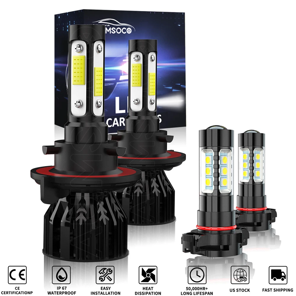 This listing includes 2 pairs of 6000K White LED Bulbs combo fit For Headlight + Fog Light This complete headlight package includes High Beam Headlight + Low Beam Headlight + Fog Light . Ultra Bright LED Bulbs, 2 - 3 times brighter than traditional bulbs Easy plug and play, safe connection Done long testing to make sure it fits your car!! When compared to OEM yellowish halogen lights, these LED bulbs are in a brightness HID matching xenon white color to give your car an awesome look! LED Headlight Bulb: Plug Type: High-Low Beam Voltage: DC 9V-36V(fit 12V,24V vehicles) Color Temperature: Pure White 6000K - 6500K IP67 rated water and dust seal,over 30000hrs lifetime Beam Angle: 270 degree@low beam,360 degree@high beam Material: Magnalium, Aluminum Operating Temperature: -40-80 degree Celsius Usage: Headlight (2pcs/set) High-Low Beam LED Headlight Conversion Kit Customized COB chip light source, 4 luminous faces(270/360 degree) no blind zone Engineering beam pattern design throw more light on road evenly at appropriate angle without foggy light Xenon white light reflect road paint/signs better to show clearer road situation during night driving 270 degree low beam angle with cut-off line,will not dazzle oncoming traffic All-in-one heat conduction+high speed mute fan system keep the light bulb in appropriate working temperature Built-in constant current CPU, instant full brightness without start-up relay Two-way heat dissipation channel All-in-one Magnalium Aluminum alloy profile as heat conduction system, 360 degree heat radiating Fog Light Bulb: Plug Type: Fog Light Voltage: DC 9V-36V(fit 12V,24V vehicles) Color Temperature: Pure White 6000K - 6500K Lifespan: >30, 000 hrs Light Color: White This new product has high luminous efficiency, low power consumption and long service life. 360 degrees illumination with magnified projector lens Heat resistant, prevent overheat problem Easy installation, Direct plug in and play. Best used for Fog/ Driving lights Faster on/ off response time Energy saving, environmental protection, Stable performance, through strict test, Use safer driving Package Included: 2 x 9008 H13 LED bulbs 2 x H16 5202 LED fog bulbs On Sep 25, 2024 at 23:06:12 PDT, seller added the following information: