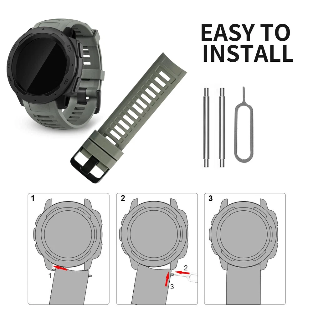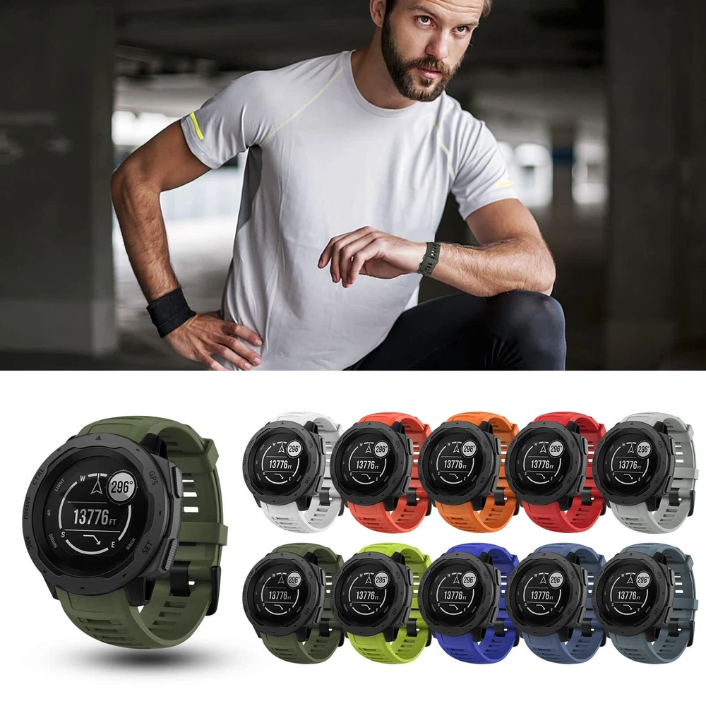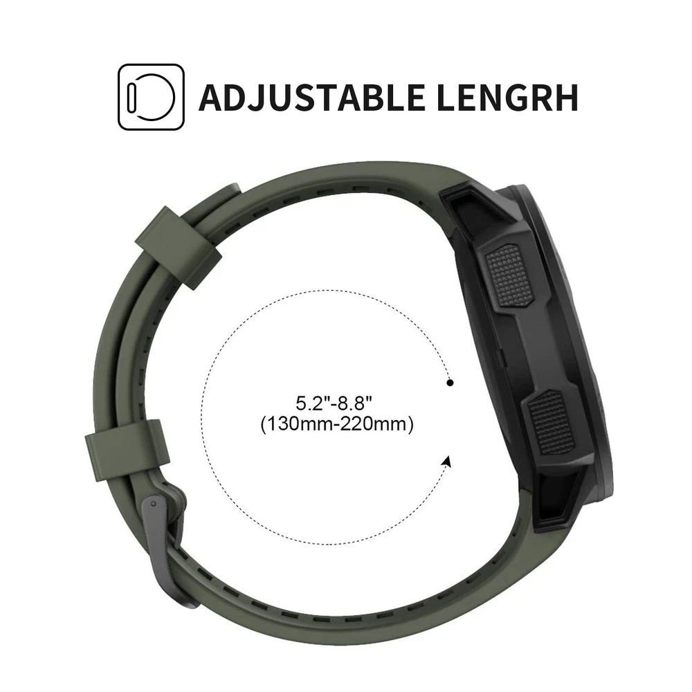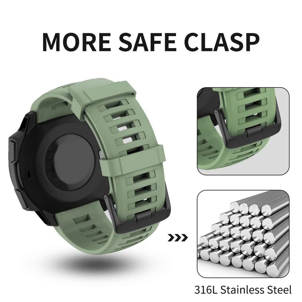 Compatible With: ---garmin Instinct/ Instinct Solar/ Instinct Tactical/ Instinct Esports/ Instinct Tide/ Instinct 2/ Instinct 2 Solar/ Instinct 2 Solar Tactical/ Instinct Crossover. (NOT fit for Instinct 2S). Not for any other models. Features: Innovative and fashionable design: Give your watch several colors so it may look unique and go with a variety of outfits and moods. Secure Design - The connect part locks onto the instinct watch precisely and securely, the high-class metal clasp works well in holding the device in place. Enjoy your sports activities with them. Soft Silicone Material - band using high-quality environmental silicone material, harmless, soft and durable. Protect your Garmin watch from scratches and getting dirty. good fit for running, work-out, outdoor sports, etc. 【Compatible Models】Compatible with Garmin Instinct / Instinct 2 / Instinct Esports / Solar / Tide / Tactical. (NOTE: The watch is not included) 【Premium Material】Garmin instinct watch bands is made of high quality skin-friendly silicone material, harmless, soft, durable and very comfortable to wear. Great for running, fitness, yoga and other sports. 【Easy to Install】The garmin watch band can be installed to your watch effortlessly. With the tools in the packages, you can finish the installation smoothly. 【More Safe Clasp】 Our replacement watch bands with double clasps, the watch band replacement can be better secured to your Instinct. No worry for falling off. 【18-Month Service】offers a 18-month after-sales service for any products. Please do not hesitate to shoot us a message if you have any questions or need any help from us.