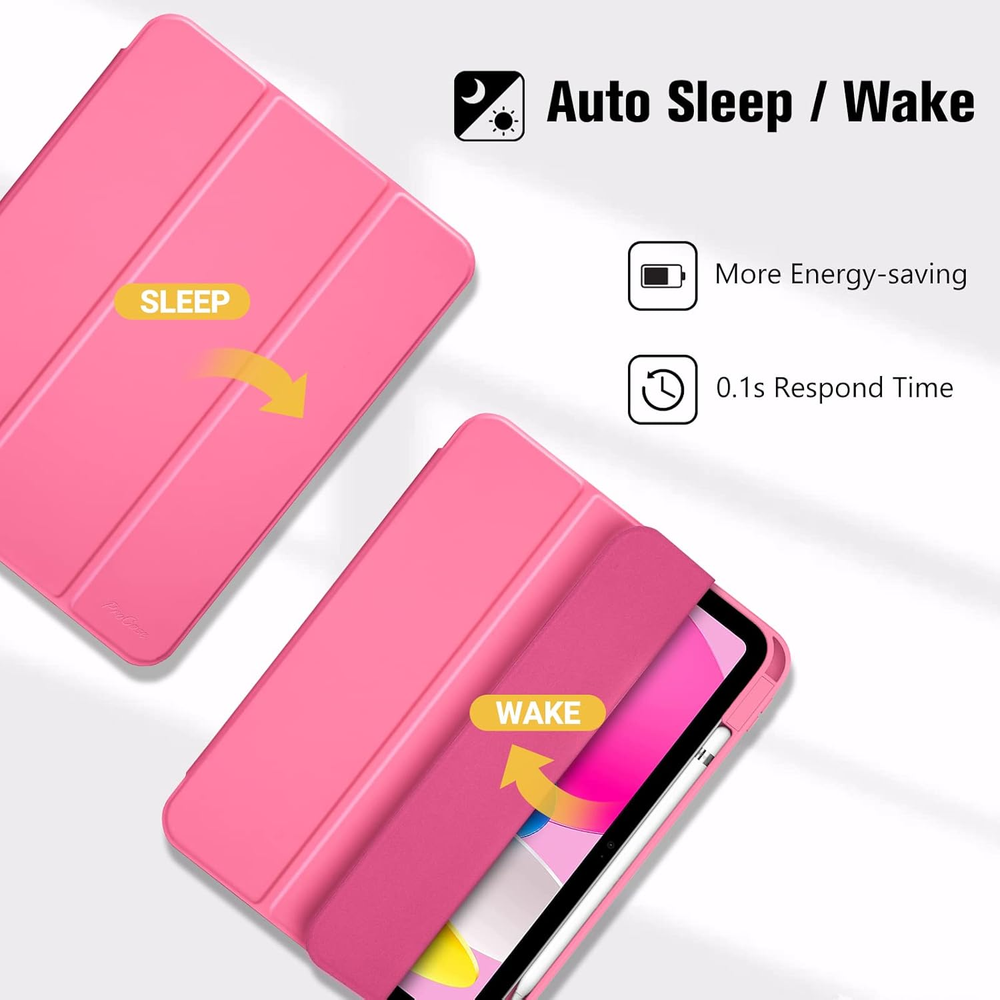 Protective case for iPad (A16) 11th Generation 11-inch 2025 Release (Model: A3354 A3355 A3356), iPad 10th Generation 10.9-inch 2022 Release (Model: A2696 A2757 A2777). Also compatible with USB-C Pencil & 1st generation Pencil. Please check back bottom of your iPad to find the model number Flexible and sturdy TPU back protects your iPad from shocks, drops, and scratches; Slim and sleek front cover offers a comfortable sense of touch Built-in pencil holder for keeping your pencil taken and put in easily, not easy to lose. Compatible with USB-C Pencil Tri-fold front cover with two standing positions is provided for satisfying your viewing and typing needs Support auto Sleep/Wake feature; Magnet secures the case closure; Precise cutouts allow you full access to all features (Cameras, Speaker, Ports, and Buttons) Product description Compare with Protective Case for iPad 10th Generation Add to Cart Add to Cart Add to Cart Add to Cart Add to Cart Add to Cart Customer Reviews 4.6 out of 5 stars 2,941 4.4 out of 5 stars 210 4.6 out of 5 stars 54,048 4.4 out of 5 stars 466 4.6 out of 5 stars 20,474 4.4 out of 5 stars 1,280 4.5 out of 5 stars 600 Price $16.98 $ 16 . 98 $14.99 $ 14 . 99 $6.97 $ 6 . 97 $17.99 $ 17 . 99 $9.99 $ 9 . 99 $19.99 $ 19 . 99 $21.84 $ 21 . 84 Feature Flexible TPU Cover Fully Body Protection 9H Hardness + Ultra Thin Anti-Spy Clear Back Flexible Frame Shockproof & Lightweight Wireless Keyboard Pencil Holder ✔ ✔ ✘ ✘ ✔ ✔ ✔ Auto Sleep/Wake ✔ ✔ ✘ ✘ ✔ ✘ ✔ Viewing Angle Dual Angles Dual Angles — — Dual Angles Dual Angles Multiple Angles Multi-Color Options ✔ ✔ ✘ ✘ ✔ ✔ ✘