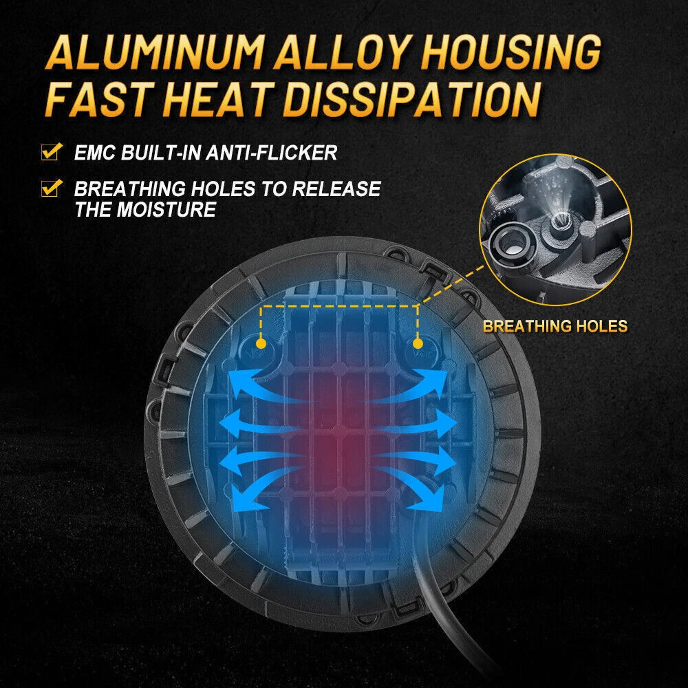 for Jeep Wrangler JK LJ TJ CJ 7" Round Newest Led Headlight Headlamp Sealed Beam Packages We Send 1x 7" inch Round LED Headlight 1x H4 H13 Wiring Adapter About Our Items --- Simple and classic design, making your vehicle look more charming,wow,just like this! --- DOT SAE dual certification, compliant with US road law, safely driving! ---Adopting the best LED chips in the market as light sources, resulting in a 300% increase in brightness! ---The shell is made of higher-level aluminum alloy, with good quality visible and durable! ---Newly upgraded EMC is already built-in , so there is no need to worry about flickering, not working, dim, and other issues. Some Descriptions Have a Look • Power:75W • Voltage: DC 9-32V • Size: 7.09" x 7.09" x 3.23" • Color Temp: 6000K • IP Grade: IP 67 • Lifespan: 80,000 hours • Housing Color: Black • Luminous Flux: 6500LM@high beam,4800LM@low beam • Meterial: Die-cast Aluminum Housing + Clear Hardcoated PC Lens • Warranty: 3 Year
