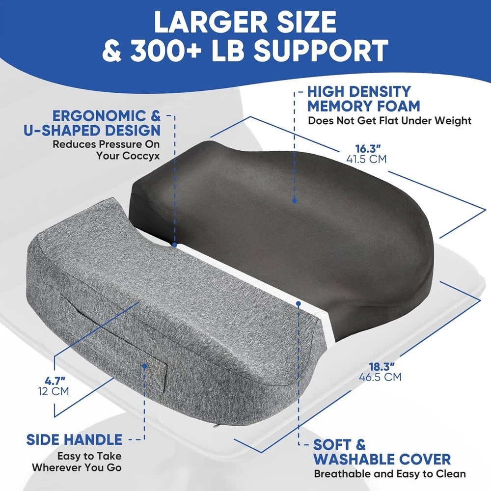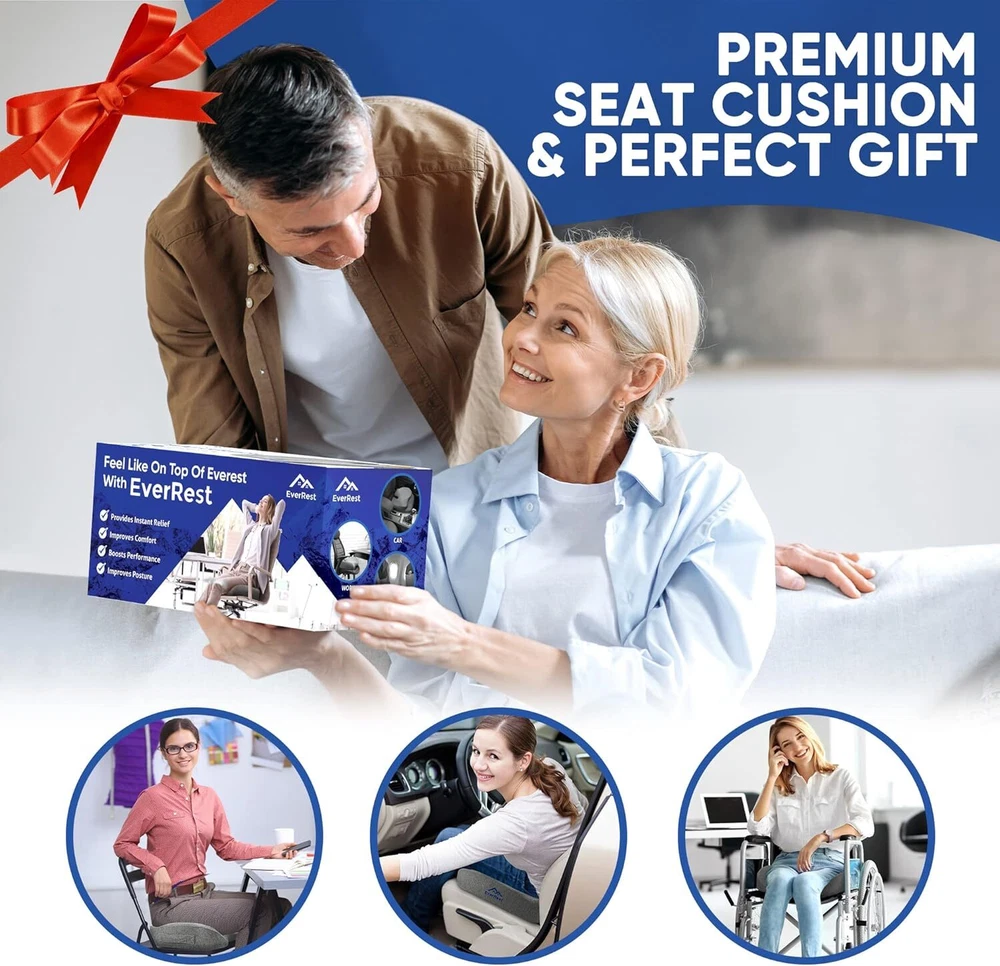 for Office Chair Plus Size - Firm Extra Wide Large Memory Foam Pillow for Tai... Firm & Not Soft - Our thick firm seat cushion delivers long-lasting comfort and support. The cushion pillow is made of high-quality memory foam and does not get flat, so you can use it over and over again Large Seat Cushion Will Fit Anyone - This butt pillow fits snugly into most office chairs, making it extra comfortable for those who spend long hours sitting. Your chair is now a high-end cloud of comfort! Lifetime Warranty - Look no further than this chair cushion with lifetime warranty. EverRest is a US based small family business and your satisfaction is our best reward! Plus, you can always reach out to us if you have any issues, we are right here for you 300+ lb Coccyx Seat Cushion Plus Size – EverRest computer chair cushion is extremely durable, supports 300+ lb weight without ever getting flat. High density memory foam pad will last for years of enjoyment The Most Ergonomic Seat Cushion. Period. Our in-house ergonomists spent over a year on designing this tailbone pain relief cushion. It is scientifically shaped with no edges that could prevent proper blood circulation in your thighs Rest Easy, Your Office Chair Seat Cushion Isn't Going Anywhere – Our coccyx cushion for tailbone pain features a slip-resistant bottom surface to keep it firmly in place. So whether you're working at your desk or relaxing at a yoga class, you can focus on what you do best without worrying about your cushion sliding under you Orthopedic Doctor Recommended Heavy Duty Foam Cushion - This chair cushion for back pain is recommended by orthopedic doctors, to support your lower back and minimizes the pressure on it. It's perfect for those with back pain, or for people who have to sit for long periods of time at work Shipping We offer FREE shipping on all orders! We ship within Three business days of payment, usually sooner. Local pickups and combined shipping options are not provided at this time. Return You can return a product for up to 30 days from the date you purchased it. Any product you return must be in the same condition you received it and in the original packaging. Please keep the receipt. Payment We accept payment by any of the following methods: PayPal Please pay as soon as possible after winning an auction, as that will allow us to post your item to you sooner! Feedback Customer satisfaction is very important to us. If you have any problem with your order, please contact us and we will do our best to make you satisfied. Contact Us If you have any queries, please contact us via ebay. We usually respond within 24 hours on weekdays. Please visit our eBay store to check out other items for sale! Thank you for shopping at our store.