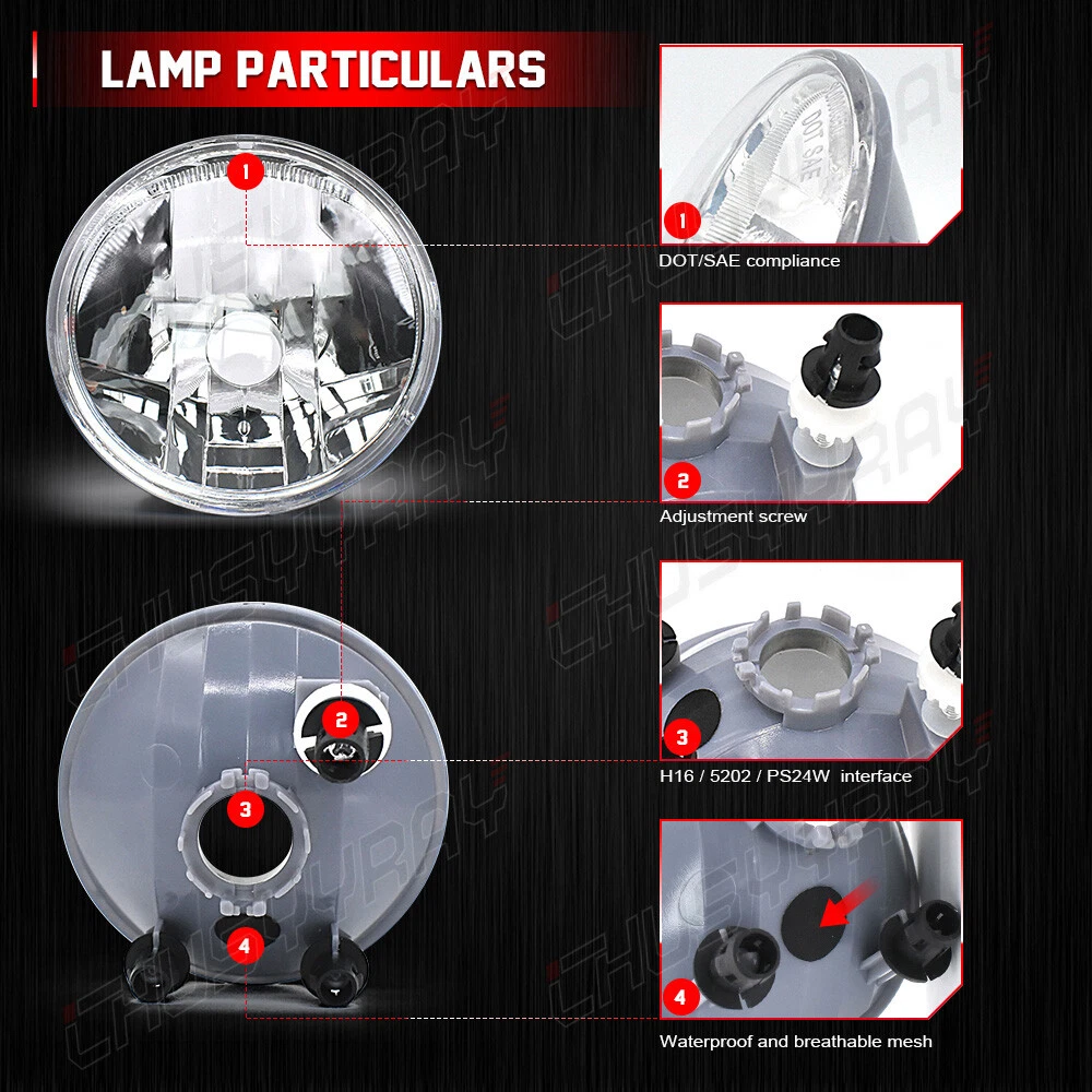 If you find any problems after purchasing the product, please feel free to contact us through eBay email. We will deal with the problems for you as soon as possible. PRODUCT INFORMATION 1.Specification: -lens Color: Clear -Working Voltage: DC 12V -Power: 24W each bulb -Bulb Type: 5202/H16 Fog Light Bulb -Color Temperature: 6000K White -Surface Finish: Virtually Unbreakable PMMA Lens -Lifespan: >50, 000 hrs -Application: Fog Light -Manufacturer Part Number: GM2590104, FO2590111, 15839896, 7R3Z15200A 2. EXCLUSIVE CUSTOM STYLING – Bulb:PS 12V24W Wiring Harness: Not included Certification: DOT/SAE Compliance Sold in pairs with white housing + clear lenses and high intensity lamps that provide exceptional lighting for increased driving safety. 3. SUPERIOR LIGHTING - Replaces Original (OE) Part #:15839896;7R3Z 15200 A 4. TOUGHER CONSTRUCTION - Heavy-duty housings are made of superior grade ABS plastic to ensure exceptional weather and impact resistance, so they will last longer. 5. SIMPLE PLUG AND PLAY INSTALLATION - These bolt-on style lights are designed for quick and easy installation. There's no need for any modifications, they drop right into the factory location. PACKAGE INCLUDE 2 fog light (left = right side) 2 bulbs PS:Unless noted otherwise, these are new aftermarket parts. They align with original equipment specification and act as a direct replacement for the factory part. They will fit and function as the original factory part did