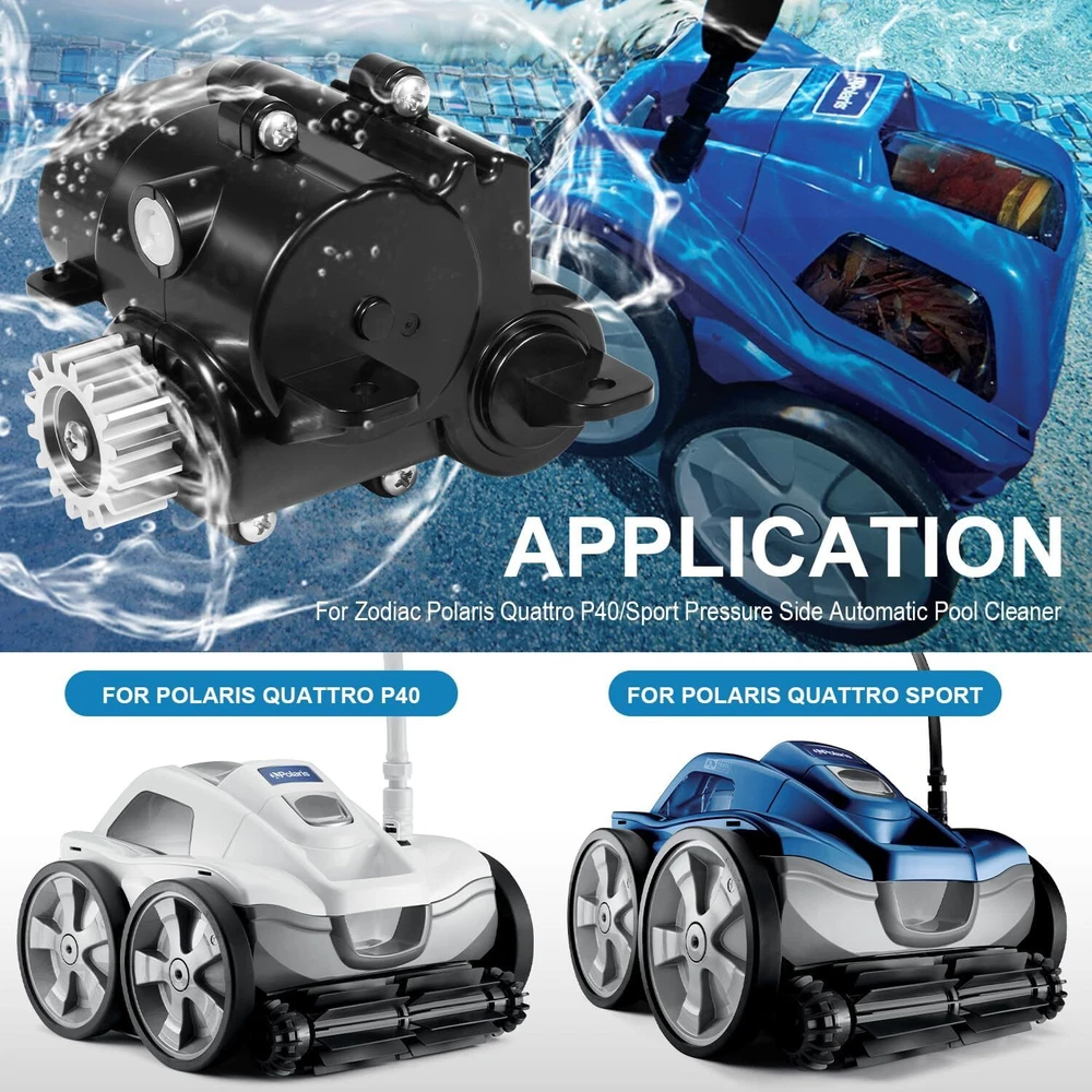 Replacement for Polaris R0837300 Quattro Gearbox Assembly for Zodiac Polaris Quattro P40/Sport Pressure Side Automatic Pool Cleaner 【Fitment】 Fit for Zodiac Polaris Quattro P40/Sport Pressure Side Automatic Pool Cleaner. OEM Polaris Quattro P40/Sport Gearbox Assembly R0837300. 【Function】 Direct replacement for the worn out or broken gearbox to ensure the cleaner is cleaning the entire swimming pool. This gearbox helps switch direction from going forward to reverse when the cleaner reaches a corner or the top of the water surface. 【Direct Replacement】 When this part malfunctions, the cleaner will no longer operate correctly or move, this normally occurs over an extended length of time and use of the cleaner. Simply replace this part to fix the problem and make your cleaner work like new. 【Superior Material】 Made of high-quality material with rust and corrosion resistance, this gearbox can withstand long tern use in the pool maintenance. Package comes with instructions for easy installation. Function Direct replacement for the worn out or broken gearbox to ensure the cleaner is cleaning the entire swimming pool. Material Made of high-quality material with rust and corrosion resistance, this gearbox can withstand long tern use in the pool maintenance. Fitment Fit for Zodiac Polaris Quattro P40/Sport Pressure Side Automatic Pool Cleaner. OEM Polaris Quattro P40/Sport Gearbox Assembly R0837300. CONTACT US: If you meet any problem after receiving our product, please feel free to contact us. We will try our best to solve your problem. SHIPPING POLICY: Orders will be ship out within 1-2 business days after payment has cleared. Orders from Saturdays, Sundays or holidays will process on next business day and will be ship within 24 hours. Please allow 10-30 days for international deliveries. Some shipments could take longer subject to your local customs authorities. RETURE & WARRANTY: 1 We accept 30 days return guarantee for all Items If you are unsatisfied with something you bought from us, you may send it back within 30 days of receipt, and we shall be happy to exchange or refund. 2 Leave a message note in returned box quoting your item(s) ID and buyer ID. 3 All returned products must be in their original condition and packaging. Unfortunately, if products have been assembled or modified, we cannot take them as returns. 4 It is important that we know when your return is expected. Please save your return tracking number or post receipt, and email it to us. We need this in case there are any issues during transit. 5 Refund will only be issued upon our receipt of the returned parcel. Please allow 2 working days for us to process with your return. ABOUT REPLY: If you have any questions, please feel free to email our service specialists 24 Hours a Day, 7 Days a Week, and we will reply you ASAP. If no response within 24 Hours, please check the spam of mail box or kindly re-send it to us. ABOUT FEEDBACK: Please contact us before leaving Netural or Negative feedback if you are not satisfied our service or products. Good communication is helpful for both of us to resolve any problems and issues. We work hard to make sure EVERY CUSTOMER 100% SATISFIED and resolve any problem for you and always leave positive feedback to all our customers. If you are satisfied with our service, please leave FOUR 5-Detailed Selling Rating (DSR). Thanks!
