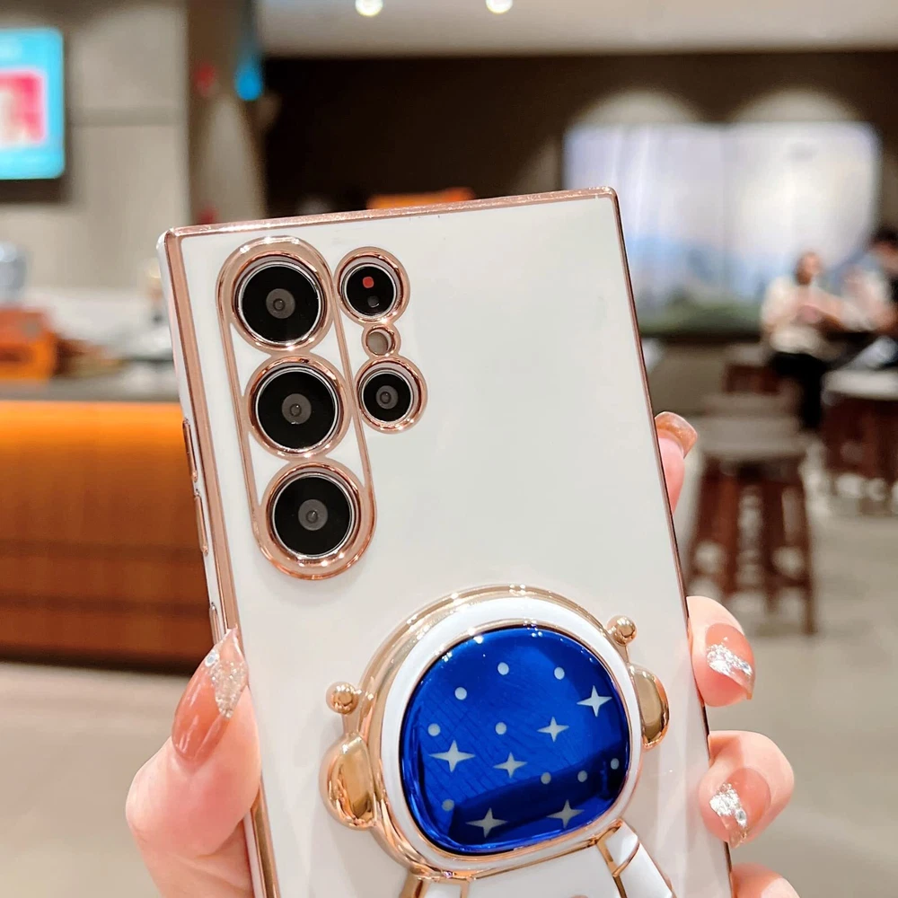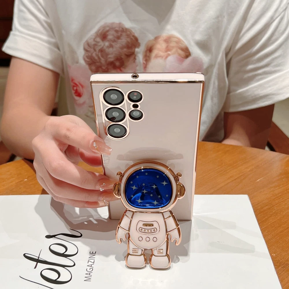 Compatible Models: This astronaut phone case for women is Only Designed For Samsung Galaxy S23 Ultra 6.8 Inch, Not Suitable For any other Model. Please check your mobile phone model before purchasing. It comes with a cute 3d astronaut stand Material: Made of soft TPU material, soft, smooth and durable. Soft TPU rubber material and full camera lens protection keep the original beauty of your galaxy s23 ultra. Soft comfortable touch feeling provides extreme drop protection and scratch resistant. Plated edges make your phone more beautiful ,luxurious and stylish (Never fade ) 3D Astronaut Hidden kickstand: Our Samsung Galaxy S23 Ultra Phone Case comes with a cute starry night 3D astronaut hidden kickstand. Free your hands to enjoy yoga /watching/meeting/learning/Face Time and so on by easily and freely switching between vertical, horizontal and adjustable viewing angles.Kickstand is cute yet sturdy,The stand snaps into place when you fully close it.A good choice as a gift for girls, women and ladies Full Camera Protection: Compared with regular cases,this case equipped with an installed full lens protection cover, which makes your lens dust free and enhance lens protection. No more exposed lenses, provides deeper protection with your Samsung Galaxy S23 Ultra. The Samsung Galaxy S23 Ultra case with unique 3d astronaut hidden kickstand designs would get lots of compliments from your friends All Cut-Outs Fits Perfectly: The cute samsung s23 ultra case brings you greater portability and firmer grip without adding bulk. Perfectly fits your phone with perfectly aligned cutouts for all buttons, ports, speaker and camera, precise cutouts allow easy access to all features and buttons. Easy to install and remove