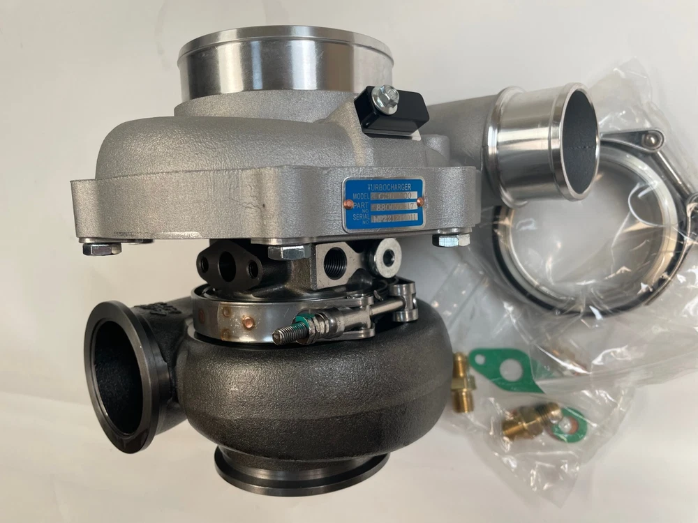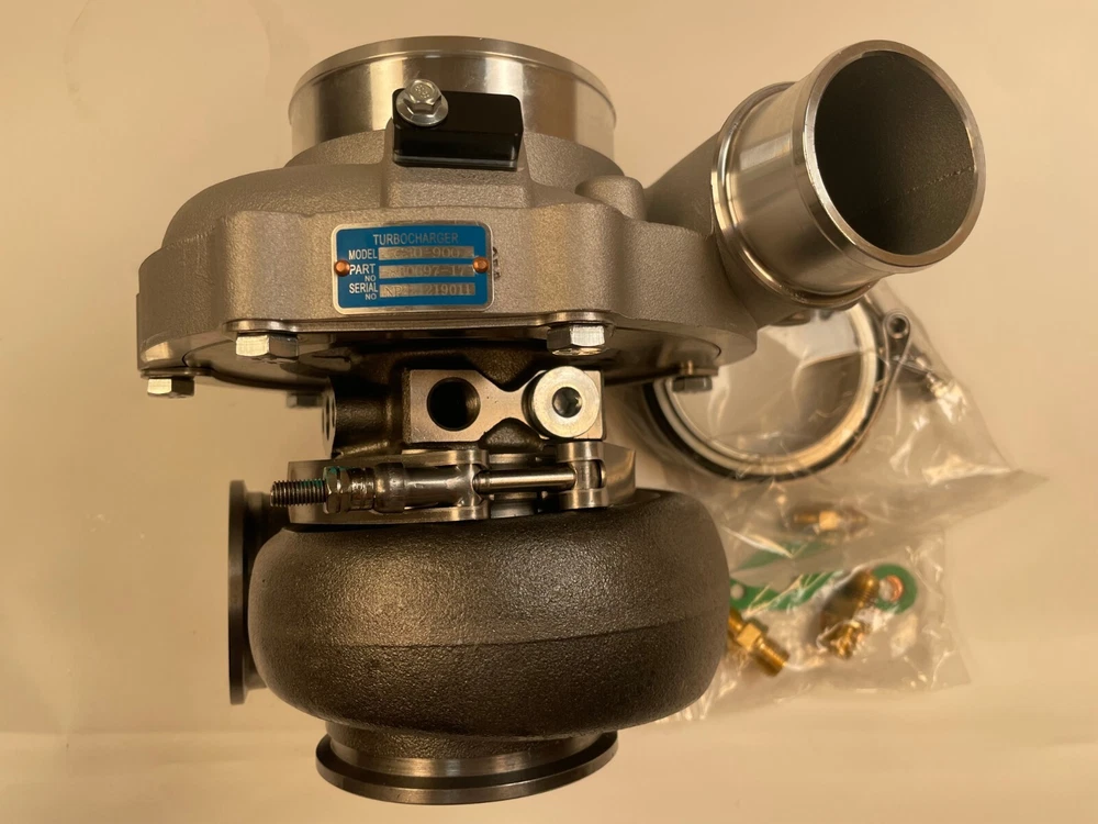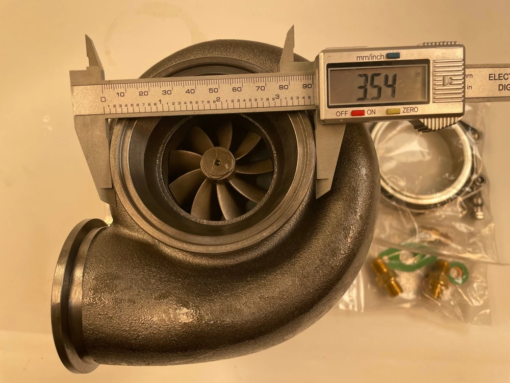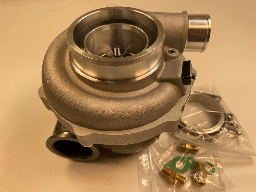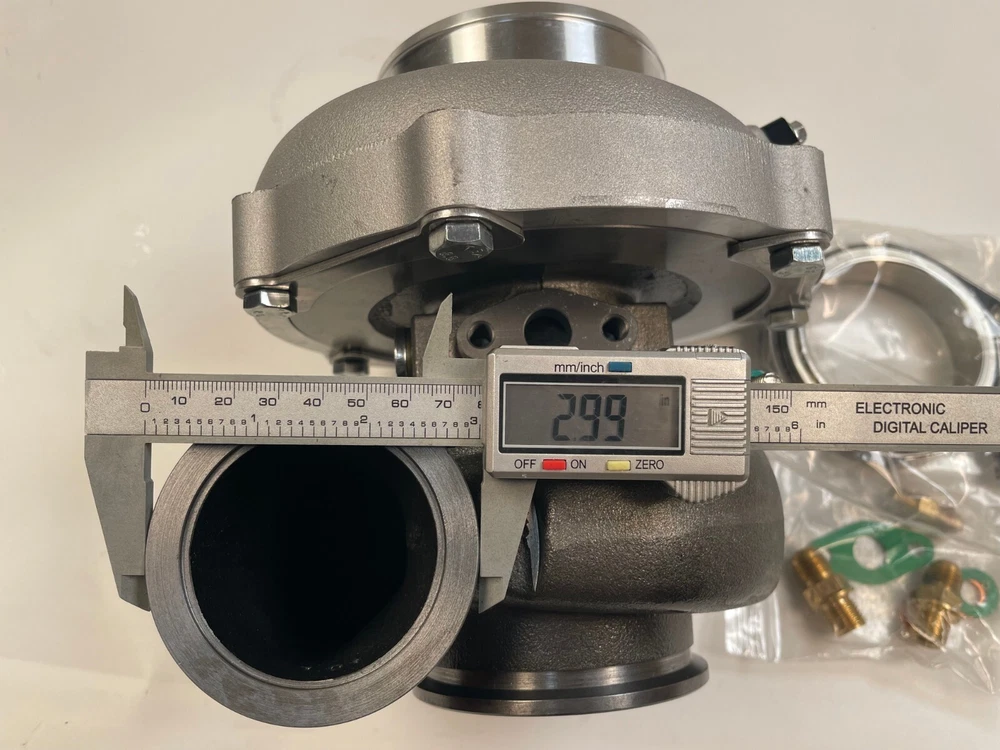 Turbo model for G-Series G30-900 horsepower:550-900HP Fit engine displacement 2.0-3.5L 9 blades Point billet compressor wheel bearing type:Ceramic Dual ball bearing cooled type:water and oil cooled oil restrictor & water fittings included Includes Oil Feed (1mm) Restrictor Fitting to -4AN Includes two Coolant Fittings to -6AN Includes Turbine Housing Outlet V-Band Clamps Refer Part #: 880697 Compressor details a/r 0.72 anti-surge air inlet 4" air outlet 2" inducer 61.75mm exducer 75.60mm Compressor Trim: 65 Turbine details a/r 1.01 Turbine Housing Inlet: 3 Inch O.D. V-Band Turbine Housing Outlet: 3.55 inch (90mm)O.D. w/81mm centering ring V-Band inducer 60.00mm exducer 54.98mm Turbine Trim: 84 ****************Very Important Points******************* 1.Please make sure to open the box immediately when taking delivery, to avoid any potential issues Do NOT sign for any damaged package and report it to the couriers immediately, let the couriers sign for damage, then Contact us please! We will work with the couriers to solve shipping issues. 2.we can accepet customized order!more products you order, the price will be nice.
