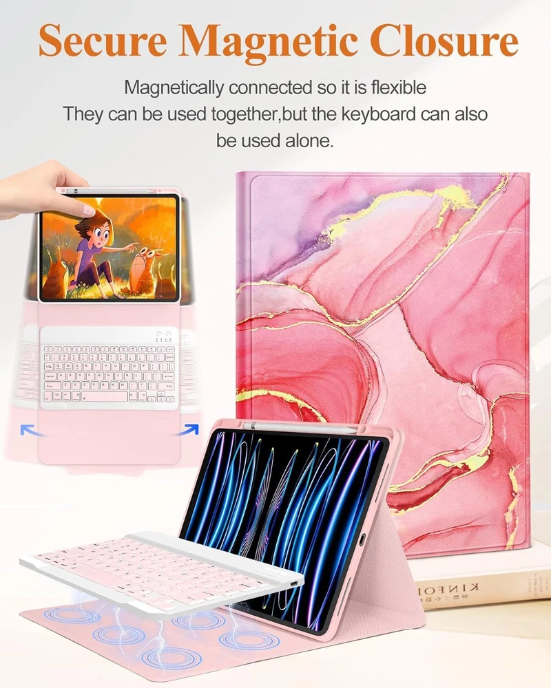 for iPad Air 13 inch Case 2024 M2, for iPad Pro 12.9'' Case with Keyboard Pencil Holder Folio Tablet Cover Women Girls Cute Kawaii Flower Art for Apple Air 11, Pro 12.9 Product Details Brand: Wazzasoft Compatible Devices: iPad Pro 12.9 inch 3rd/4th/5th/6th Generation, for iPad Air 13 inch (M2) Style: Pink Marble Manufacturer: Wazzasoft Detachable Keyboard: The detachable Bluetooth keyboard allows you to effortlessly switch your tablet between typing and tablet mode, perfect for on-the-go productivity, and is perfect for writing emails, reports, or catching up on work while you're away from your desk Built-in Pencil Holder: This for iPad Air 13 inch case 2024/for iPad Pro 12.9 3rd/4th/5th/6th generation case with pen holder can keep your Pencil secure and within reach with our dedicated pen slot to prevent loss or misplacement. So it's always ready for use and never lost Full-Body Protection: Our this for iPad Air 13 M2 case, for iPad Pro case 13 inch provides full-edge protection and comprehensive coverage to safeguard your tablet from drops and impacts, ensuring it remains in pristine condition, giving you peace of mind