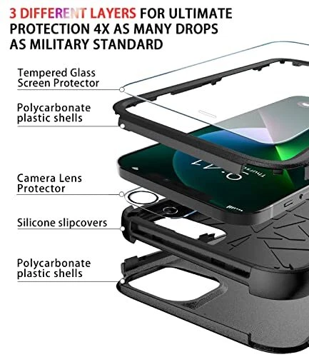 for iPhone 13 Case [Shockproof] [Dropproof] 13-Black-screen protector