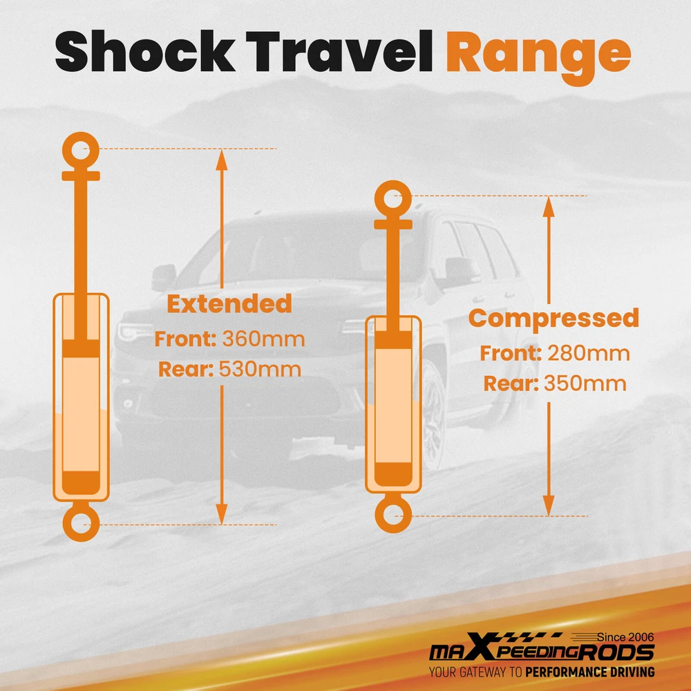 cmtat Home Contact us Promotion WHY CHOOSE US Most Competitive Price Manufacturer We know our products Easy Return Quick, Simple Guaranteed Fitment Always the correct part front rear shock Absorbers fit for Navara D22 4x4 Ute 4wd Frontier 1997-2016 Fast Shipping International Shipping 30 Days Return Policy Secure Shopping DESCRIPTION Fitment: For 1997-2016 Nissan Navara D22 4x4 Ute - Standard Height Springs ONLY Specification: Twin-tube design with Nitrogen charged 32mm piston Chromed Hardened 18mm Piston Rod 50mm shock body 36kN Tensile Strength package included: 2x Front Shocks extended length: 360mm collapsed length: 280mm 2x Rear Shocks extended length: 530mm collapsed length: 350mm Feature: Filled with nitrogen for better ride and handling Use high quality oil to ensure that the shock absorbers work well in different weather conditions powder-coated for corrosion resistance rubber bushing for less noise and more comfortable SHIPPING US Domestic Shipping Notice - All items will be dispatched within 24hrs(Mon-Fri) Our carrier collects all the parcels at 4:30am PDT, any payment paid after 5:00am PDT will be shipped the next day at 4:30am PDT. If you paid Item Shipped On Est.Delivery Time Before Apr. 1st at 4:30am Apr. 1st at 5:00am Apr. 5th - Apr. 7th After Apr. 1st at 4:30am Apr. 2nd at 5:00am Apr. 6th - Apr. 8th If our estimated delivery time and eBay’s are contradictory,please refer to the standard delivery time of ours. Estimated Delivery Time From To Service Est.Delivery Time US US UPS or Fedex Ground 3-5 Business days Outside of US DHL FedEx 4-7 Business days International Shipment For international shipment, we do not cover any import taxes or duties. Import tax is charged by the government, not us. Our item price and shipping cost do not include any import tax which will be charged by the shipping company when you got the parcel. Please be noted that is not the extra shipping fee. WARRANTY Free 2 Year Warranty: All SpeedingParts products have 2 year warranty (unless otherwise stated).In the very unlikely event that you have a problem with our product, please contact us via eBay messages. Easy Return: If you are unhappy with your purchase for any reason, you can return it to us in an un-used condition in the original packaging within 30 days of purchase and we'll give you a refund or exchange. The refund/Exchange will not include postage/eBay costs. Please note you MUST contact us to obtain a Return Authorization Number before returning any part. Any parcel without the Return Authorization Number will be rejected. If your item is faulty or was incorrect, you must contact our sales representative before returning the parcel and we will endeavour to solve the problem effectively. Video or picture is required to show the item condition before we issue the Return Authorization Number. Important notice: 1. Any returned item(s) without Return authorization number will be rejected. 2. Please return your item(s) in original packaging and ensure that all packages are securely wrapped 3. We will not accept responsibility for loss or damage of goods during transit, please ensure that the insurance cover option is taken where possible 4. Upon receipt, all products will be inspected at our discretion in 3-5 business days. Then, the updated result will be informed. If you have made a mistake on purchase and wish to cancel the order before it is dispatched please contact us by ebay message as quickly as possible. Note: All parcel will be collected by carrier at 8:00am on Monday to Friday. FAQ Will this fit my car? We have used the eBay compatibility list as a guide for buyers to use, but the eBay data system is not accurate and incomplete sometimes. Please make sure you have read through the whole listing and paid attention to “note” and “notice”. If there is any uncertain, please use the eBay message to check with our sales first. How much does delivery cost and how long will it take? You can check the delivery cost in the listing “Shipping and payments” section by selecting your country and entering your zip code. If it is not specified, please provide us your shipping address and zip code via eBay message. For US domestic shipping, the delivery time is around 2-3 business days. The international shipment delivery time is around 4-7 business days. What payment methods do you accept? We currently only accept payment via PayPal. You can also use PayPal as a guest and pay using a debit or credit card. When will my order be dispatched? We will arrange the shipment in 1 business day after the payment is cleared. The tracking number will be updated on eBay in 24 hours after the shipment. Please notice that there is no shipment during weekend and holidays. Can I amend my order? Sorry no. Once the payment is cleared, we cannot amend any item(s), quantities, or add or remove items. We are also unable to change the delivery address. Therefore, please double check all the order information before making payment. What do I do if I have not received my order? Please simply contact us via eBay messages, and then, we will get back to you as soon as possible with the update. Usually, we will follow up every shipment till customers get their order. What do I do if my product is faulty? Please simply contact us via eBay messages, and then, we will get back to you as soon as possible. It will speed up the process if you could provide us some pictures or video to illustrate the issue details. OTHER ITEMS YOU MIGHT ALSO LIKE OTHER ITEMS YOU MIGHT ALSO LIKE Universal Billet Aluminum Type-rs Turbo Blow Off Valve Bov+63mm Flange Tube Pipe Air Suspension Compressor Pump Fit For Mercedes GL350 ML550 2006-2012 1643201204 Cam Camshaft .552" Hydraulic Roller Sloppy Stage II for LS1 Pontiac GTO Firebird Set Of 6 Diesel Fuel Injectors For Cummins for Dodge Ram 6.7l 07-12 0445120185 Intake Engine Manifold Assembly for Ford Small Block 289 302 1pcs Downstream Oxygen Sensor For Infiniti EX35 Nissan Maxima Versa