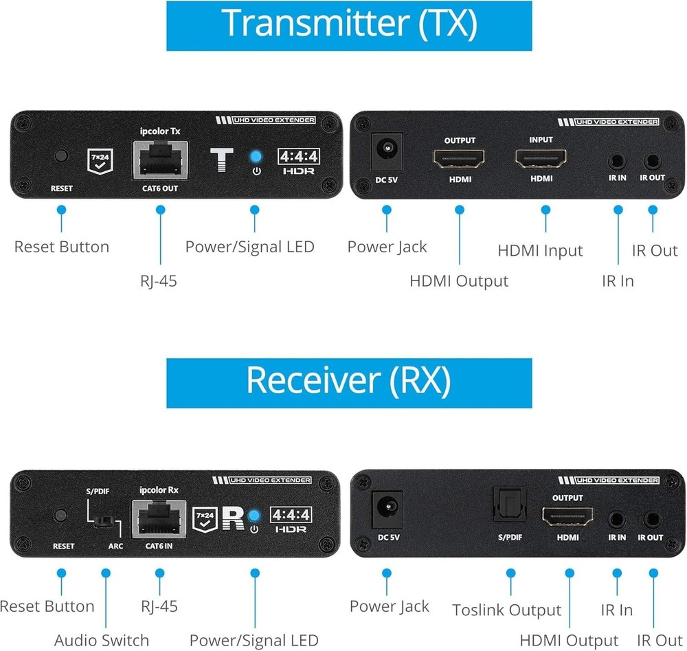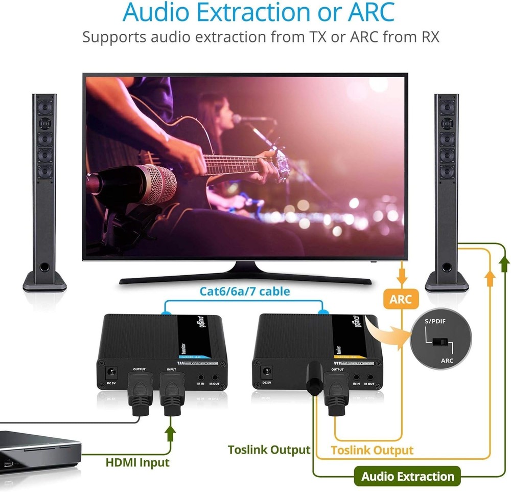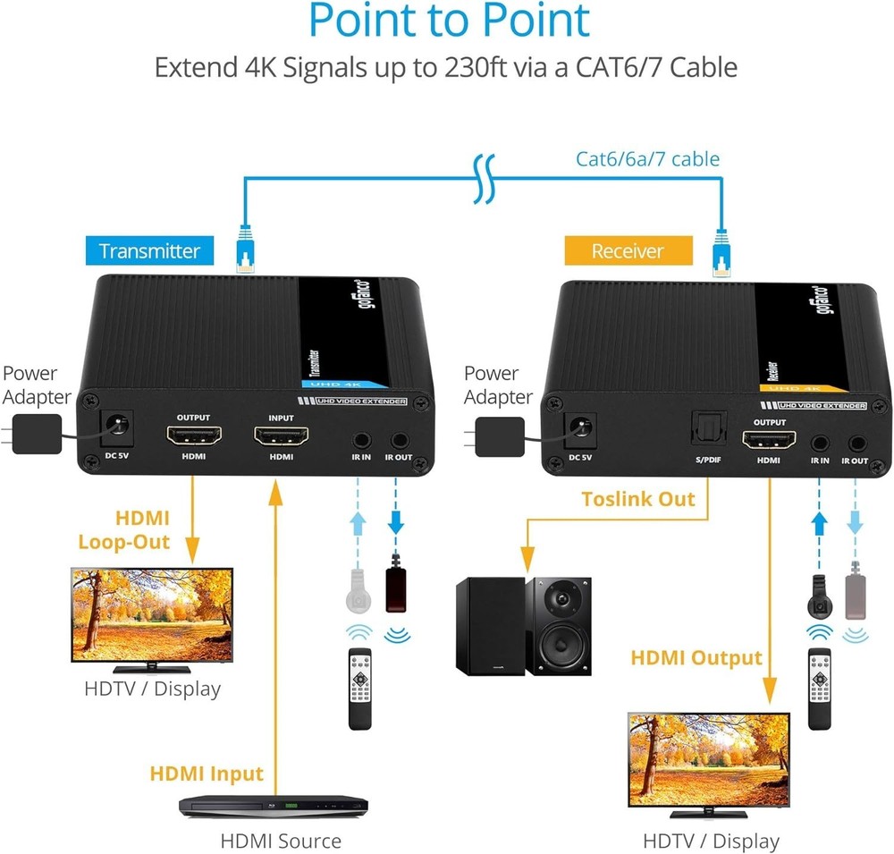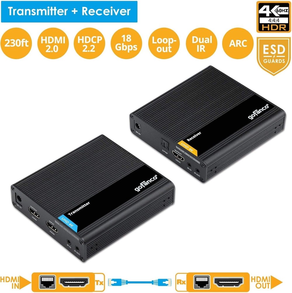 gofanco HD20Ext-Aud 4K60 HDMI Extender Cat6/7 230ft HDR 18Gbps HDCP2.2 Open Box