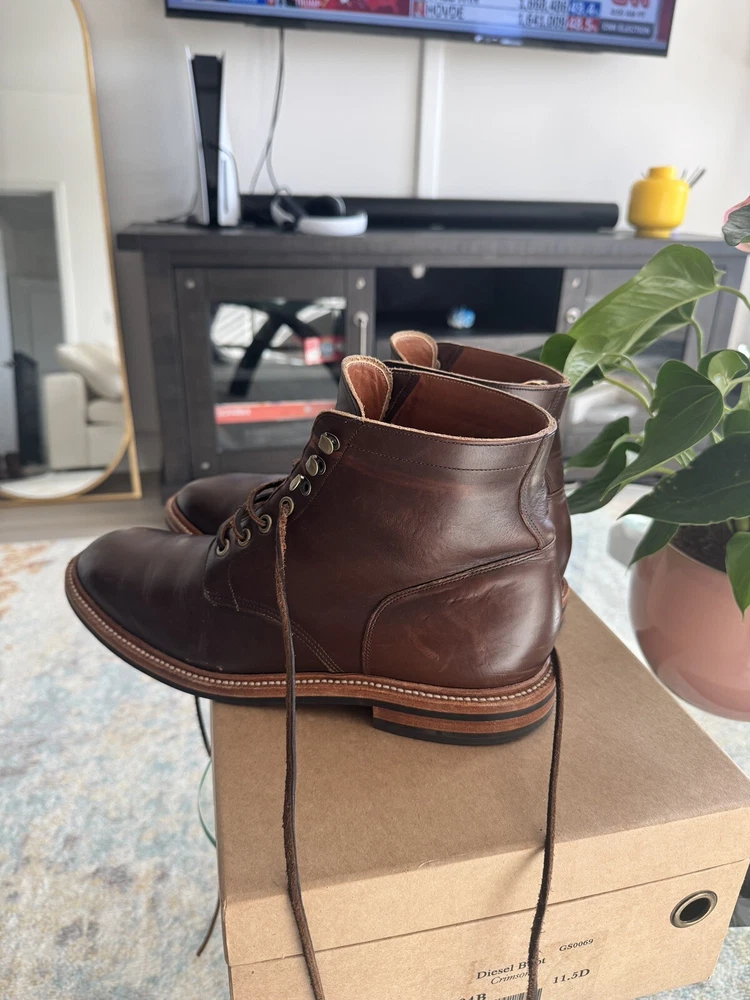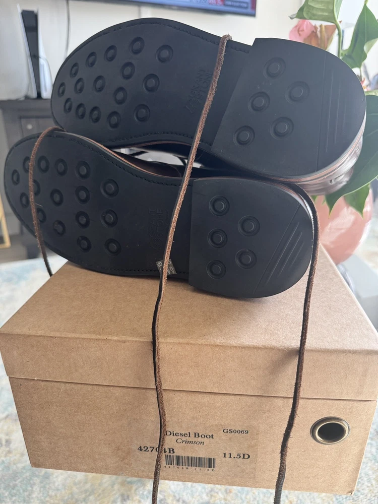 ** ORIGINAL RETAIL PRICE IS $379. Only worn for 3 months due to incorrect size. ** Elevate your style with these men's diesel grant stone boots in Crimson. The boots are designed to provide comfort and durability, with a focus on the stone accents that add a unique touch to the overall look. The boots are perfect for any occasion, whether you're heading to work or out for a night on the town. The boots come in size 11.5D and are made from high-quality materials that ensure they will last for years to come. The diesel grant stone boots are a must-have for any fashion-forward man who wants to make a statement with his footwear.