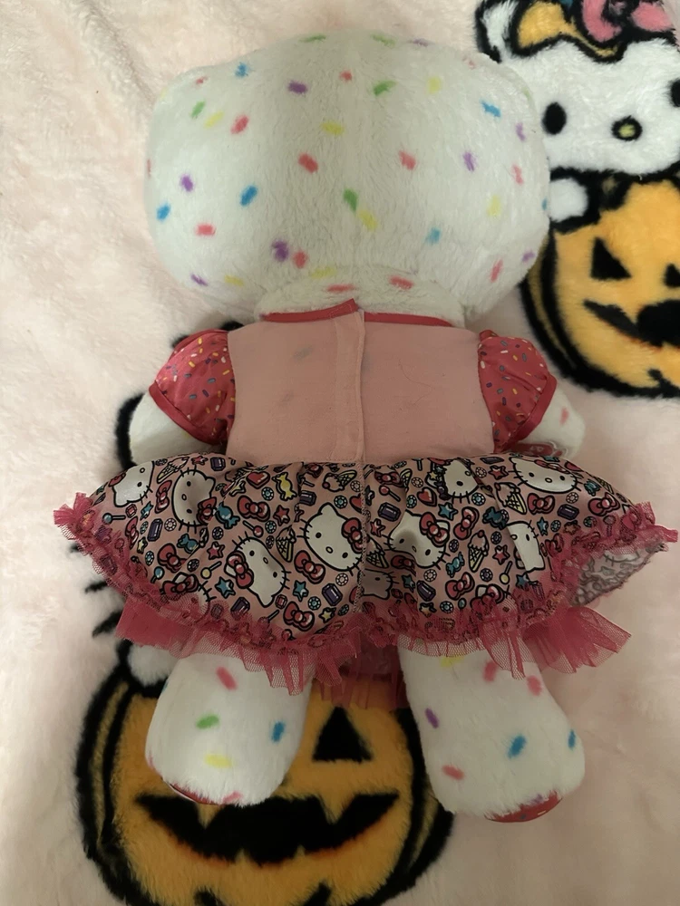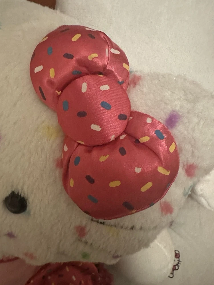 hello kitty 40th anniversary confetti sprinkles w/bow & dress plush ! - this retired plush is a must-have for any Hello Kitty fan and is perfect for collectors. - gently used also, there may have once been sound because one hand had a hard object inside, but this no longer works. Plush is in great condition.
