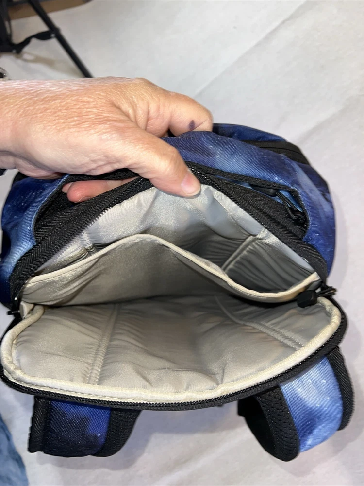 Closure: Zip Color: Blue Brand: High Sierra Capacity: Unsure Sport/Activity: Backpacking Features: External Pockets, Padded, Elastic Pocket, Harness, Padded Straps, Water Resistant