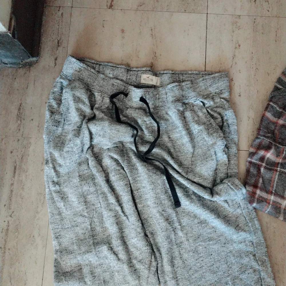 The product is a pair of Hollister joggers in size medium, designed for women. These gray joggers feature a drawstring closure, straight leg style, and a 29-inch inseam. Made from 100% cotton, they offer a slimming fit and are easy to care for with machine washable instructions. Additionally, the title mentions another pair of joggers by Secret Treasures in size medium, providing a versatile and comfortable option for casual or activewear &2pairs for1