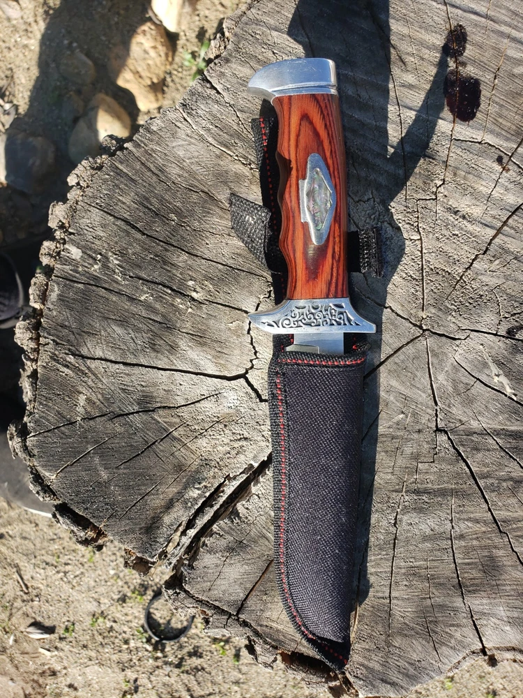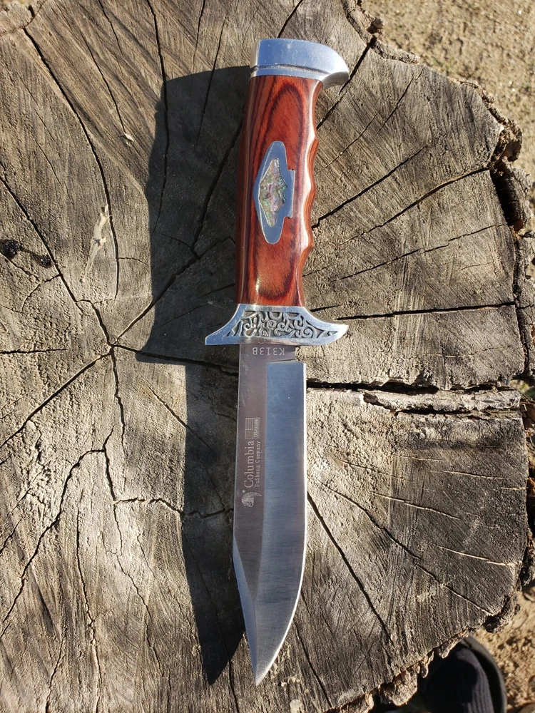 This is a hunting knife by Columbia 《FuZheng》with a stainless steel flat edge blade 7.2 inches long. BEAUTIFUL and sharp and simular knifes go for hundreds more! comes with a sheath belt holder included. our auction features 4.99 super saver shipping SAVE ON fast FLAT RATE SHIPPING. WayFarOutWest close-outs no refunds or returns accepted.