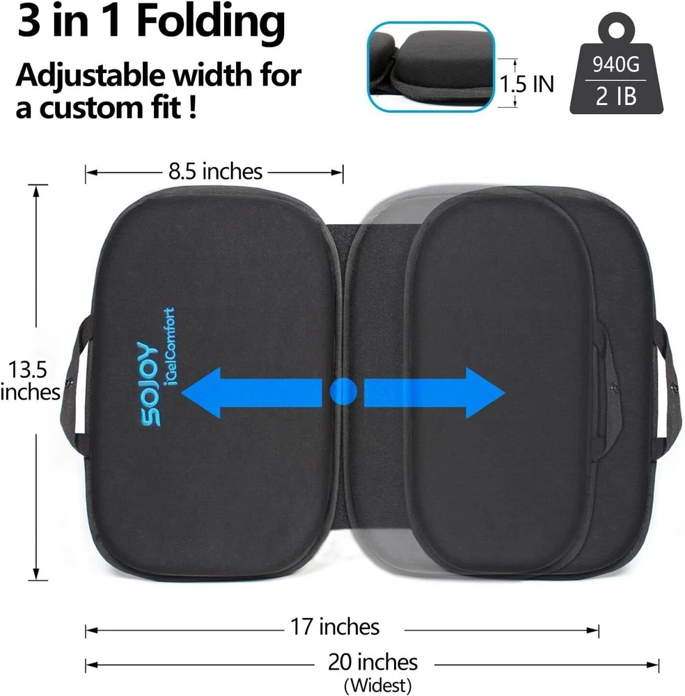 Special Feature Portable Color Black Fill Material Memory Foam Shape Oval About this item 【MOST COMFORTABLE GEL MEMORY FOAM CUSHION】-Sojoy seat cushion is made of ultra-soft, ultra-strong, solid rubber-like Gel and Memory foam material. 【SUPPORT TAILBONE AND RELIEVES PRESSURE】-Sojoy stadium seat cushion is designed for human comfort threshold, adjusting to any individual's body shape or weight. 【PROVIDES LOWER BACK PAIN & SCIATICA RELIEF,GREAT FOR OFFICE USE, DRIVING & TRAVELING】 -Breathable gel keeps cool while in use(a travel must have seat cushion!The size of the seat cushion is smart and easy to travel with(20" x 13" x1.5"). 【SIT MORE COMFORTABLE】 - Best ergonomic stadium travel seat cushion pillow to relieve pressure & promote circulation if you suffer from lower back pain, coccyx or sciatica pain, bruised tailbone, spinal injury, back surgery, arthritis, or other vertebrae issues. Excellent for promoting good posture. 【PERFECT FOR ANYPLACE YOU SIT 】- Gaming chair, office chair, kitchen, dining room, living room, patio and even your wheelchair. Great stadium seat cushion for sporting events. Good choice for truck drivers, pilots, airplane travel and your car. Also provides comfort to pregnant women. Special Feature Portable Color Black Fill Material Memory Foam Shape Oval Age Range (Description) Adult Recommended Uses For Product Traveling Material Memory Foam Item Firmness Description Soft Number of Pieces 2 Pattern Solid Item Weight 1.25 Pounds Material Feature Breathable Variety Memory Foam,Seat Cushion,Gel Seat Cushion Product Dimensions 15"L x 2"W Unit Count 1.0 Count Item Weight 1.25 pounds