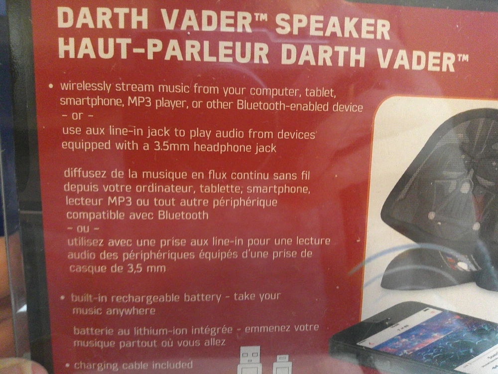 This awesome Darth Vader Bluetooth speaker rocks! The sound is crisp with deep bass, and the design is super cool—perfect for Star Wars fans. Connects easily to any device, and the compact size makes it great for travel. Came brand new in the package, just as described. Definitely a fun and unique addition to my collection!