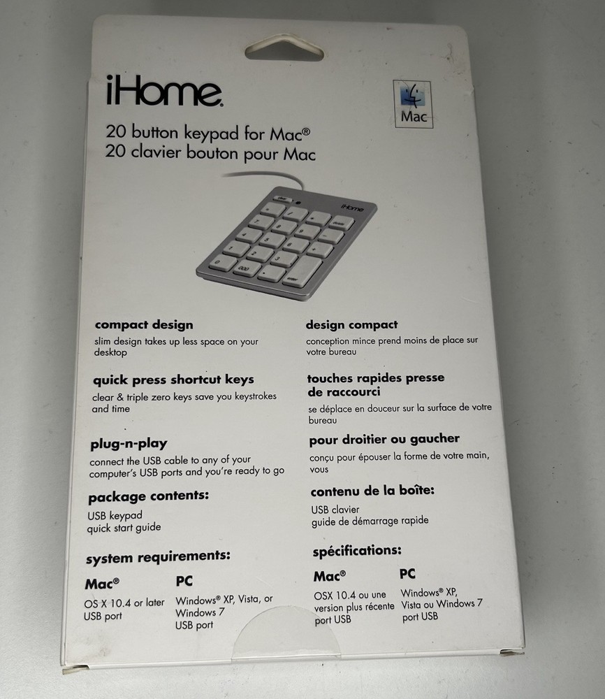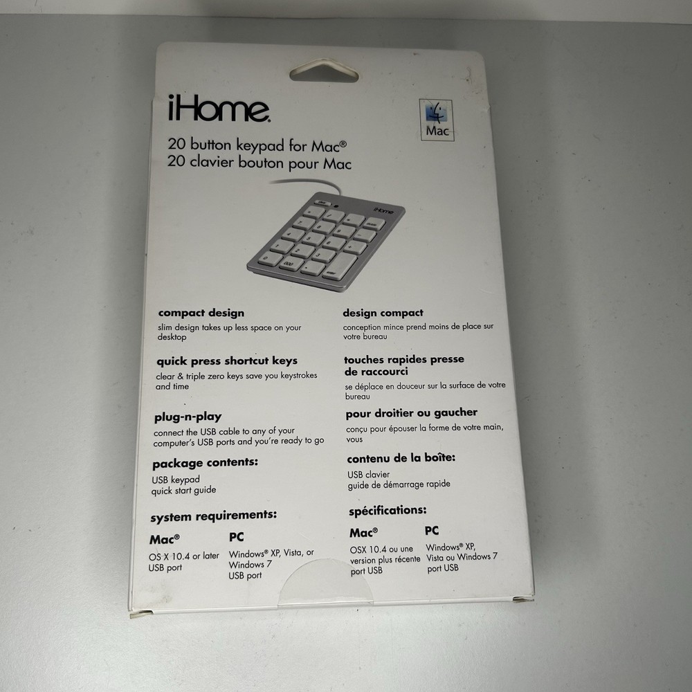 The iHome Wireless Numeric Keypad for Mac is a sleek and portable device designed for Mac users. With a standard QWERTY keyboard layout and wireless connectivity, this keypad offers convenience and ease of use. The silver color and English keyboard language make it a stylish and functional addition to any workspace. This product from iHome is perfect for those who need a compact and efficient numeric keypad for their Mac computer.