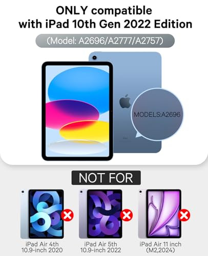 Return Policy Fast Delivery Trusted seller For iPad 10th Generation Case with Keyboard (10.9", 2022), 7 Color Backlight, Multi-Touch Trackpad, Flip Stand Case with Pencil Holder, 2 Bluetooth Channels for iPad 10th 10.9 inch 2022, Black Product Description Backlit Keyboard for iPad 10th Generation: three-level adjustable brightness and 7 pure led backlit, engaging yourself in a free and relaxed typing experience in any dim condition. The backlight will automatically turn off if you are not typing for over 30 sec to save power. Multi-touch Trackpad: this keyboard case for iPad 10th generation has an integrated multi-touch trackpad that perfectly adapts to the IOS system, with various trackpad gestures, providing a comfortable usage experience while ing, scrolling, and swiping through content effortlessly. Allows you to turn your 10.9 inch tablet into a laptop. Magnetically Detachable Bluetooth Keyboard: the intelligent keyboard case lets you switch between a lightweight laptop and tablet. Equipped with multimedia and other useful shortcuts, this detachable wireless keyboard provides you with the ultimate convenience. With a powerful 500mAh battery, its standby time lasts 120 days, even enters into sleep mode automatically if not in use for 15 minutes. 2 Bluetooth Channels & Pencil Holder: pair with up to 2 devices simultaneously and easily switch between them with only 1 . Built-in Pencil holder for Apple, cap & adapter slots, grab your Pencil, easy to carry and use. Precise cutouts allow full access to all ports, sensors, speakers, microphones, and cameras. Compatibility: this backlit wireless keyboard case is ONLY compatible with iPad 10th Gen 2022 (Model number: A2696/A2777/A2757). Shipping Returns Payment Shipping Shipping is FREE to all addresses other than APO/PO boxes in the lower 48 states. All our stock ships from US-based warehouses. Shipped via USPS or UPS (depending on location and package weight) Unless stated otherwise, all orders will ship within 24-72 hours of your payment being processed. Check our feedback to see the great reviews of FAST shipping we offer. Returns Seller does not accept returns Payment We currently accept payment via eBay managed payments only. Once payment is cleared, we will dispatch your shipment within 1-3 business days. Please refer to the "Shipping" tab for more information regarding shipping speed to your destination.