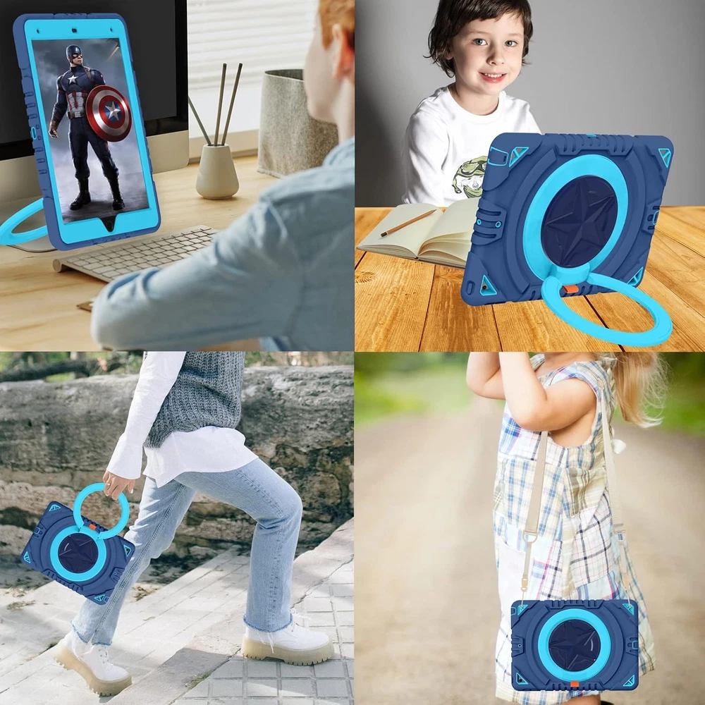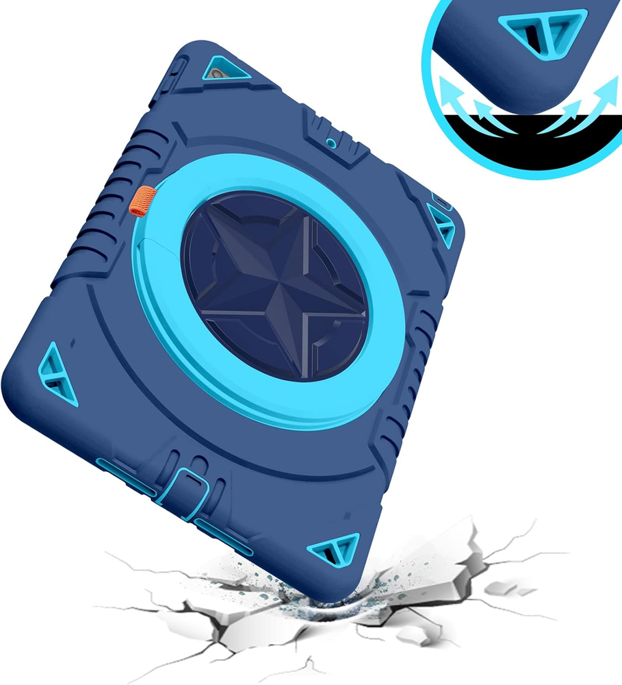 This heavy-duty iPad case is a game-changer! The shockproof design keeps my device safe, while the rotating stand and pencil holder add so much convenience. The shoulder strap makes carrying easy, and the blue color looks sleek. Perfect fit for my 10.2-inch iPad—durable, functional, and totally worth it!