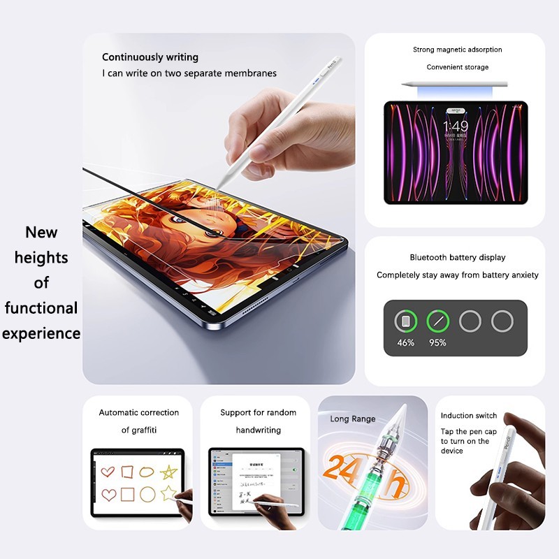 Features: The exclamation mark patented power display universal active capacitive pen is made of wear-resistant POM material, and the replaceable aluminum shell is frosted and sprayed with a better feel. Charging port: Type-c charging port with dust cap added Delay: 6 milliseconds Pen tip: pre installed special conductive pen tip, with 2 spare pen tips Material: Metal shell spray coating process, extremely soft feeling Connection: Direct use of pen tip when turning on: 1.6mm PIXELPOINT Size: 163mm long, 9.1mm diameter D-shaped pen tube, with the thinnest part only 8.3mm Weight: 70g Box gauge: 45 * 36 * 32.5CM Gross weight: 7.1KG/100pcs Charging time: approximately 1.5 hours Working time: can work for 18 hours after full power Standby time: When the battery is fully charged, it can stand by for up to 2 years Compatibility: Suitable for most capacitive screen devices System: Suitable for most capacitive screen devices Accessories: pen refill * 2, data cable * 1, instruction manual * 1 Outstanding point: Pre installed special conductive pen tip, replaceable pen tip, suitable for most capacitive screen devices