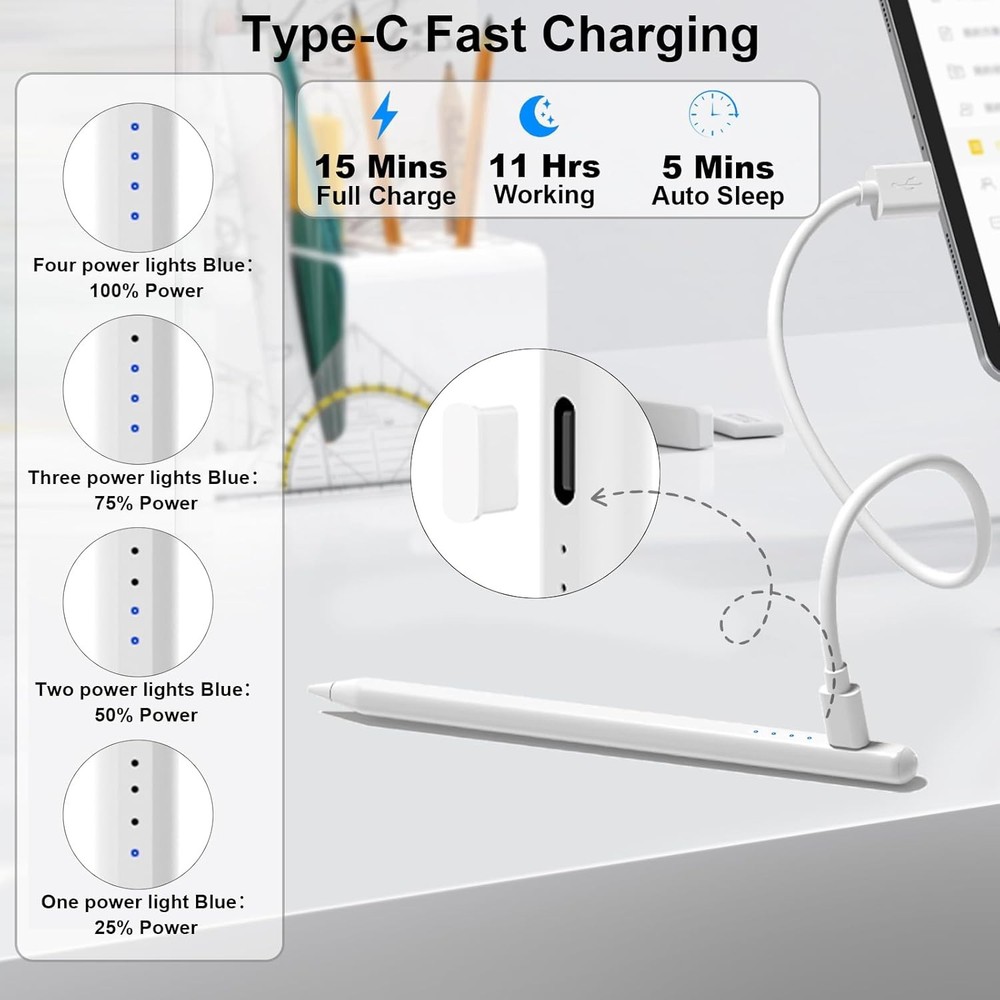 iPad Stylus Pen 2018-2024 Fast Charge 15M 2nd Gen Pencil Compatible