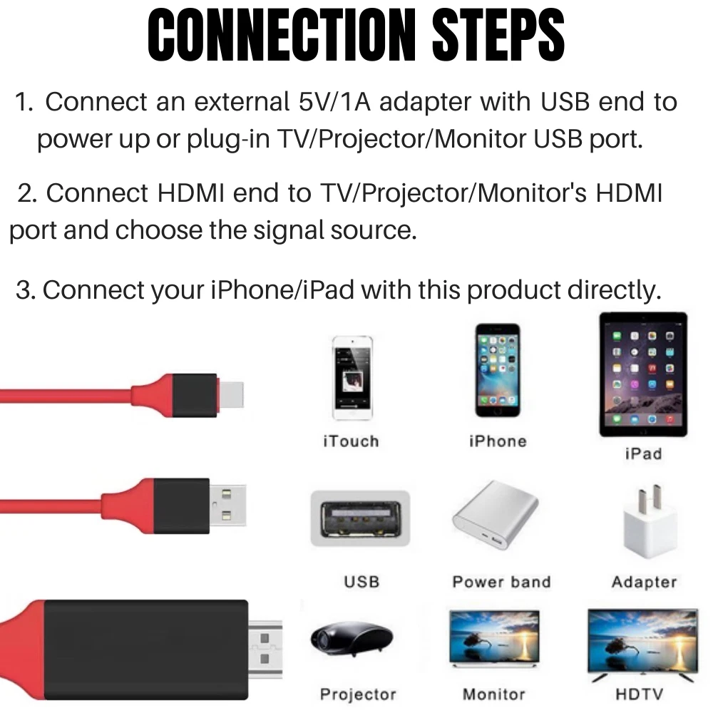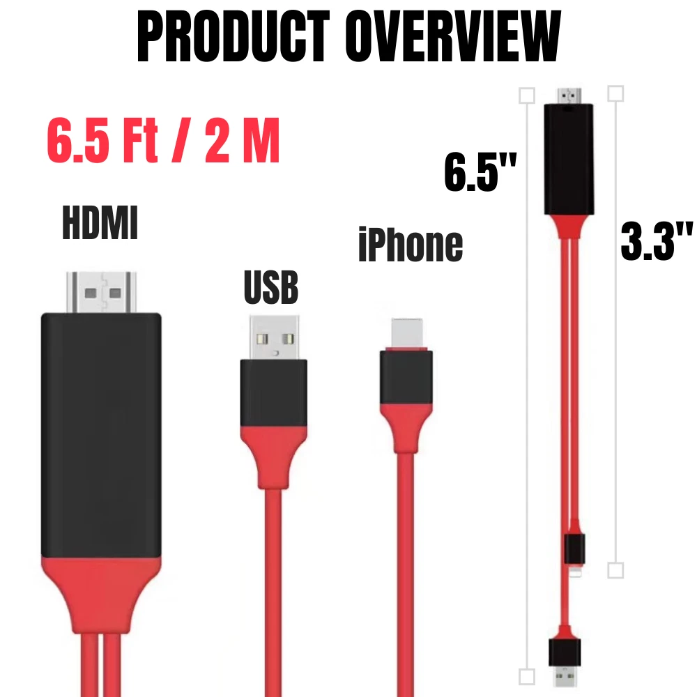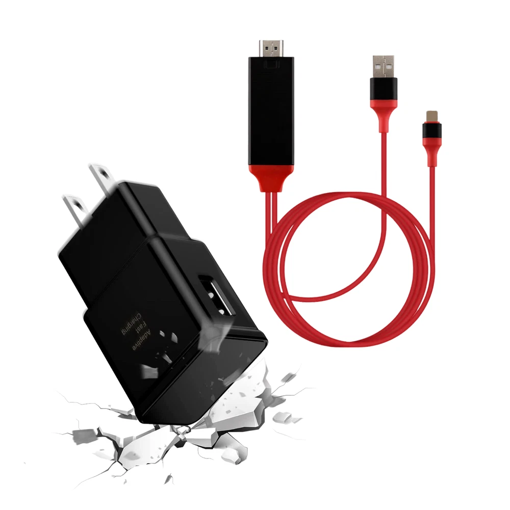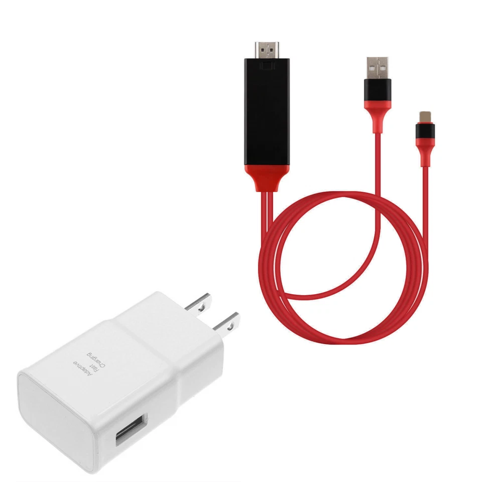 Phone to HDMI Cable Features: 100% brand new and high quality. Supports for iPhones and iPads Use it to share what is displayed on your device screen -- including apps, presentations, websites, slideshows, and more -- to your HDMI-equipped TV, display, projector, or other compatible display in up to 1080p HD. Easy to cast the phone's screen to HDTV Plug and play. Specifications: Material: Plastic + Metal Color:Red Length: 2M/6FT Package included: 1 x HDMI Adapter Cable Notes: The cable can't play Netflix and other network videos with HDCP; Pls use power adatper with 5V 1A ouput or above. Adaptive Fast Charger: This fast wall charger compatible with both Quick Charge 2.0 (QC 2.0) and Adaptive Fast Charging (AFC) ,enables mobile phone to be 50% charged in 30 mins,75% faster than standard chargers. You should not be concerned the fast charger gets hot when charging "The purpose of this AFC technology is to get the phone charged faster to a percentage of 50 to 60 percent. During charging, the phone may become very hot. It will cool down after 60% of battery. Therefore, AFC is actually not used to fully charge a device." Fast charging Compatible phone model: For Samsung Galaxy S21/S21+/S21 Ultra/S20/S20+/S20 Ultra/Note20/Note 10- Samsung Galaxy S10 / S10 e / S9 / S9 Plus/ S8 / S8 Plus / S8 Active / Note 9 / Note 8 - Samsung Galaxy S7 / S7 Edge / S7 Plus / S7 Active / S6 / S6 Edge / S6 Plus / S6 Active / Note 5 - Other Quick Charger 3.0/2.0 supported devices For Huawei P30 Pro, P30 Pro, P20, P20 Pro, P10, Mate 30, Mate 20, Mate 10 For Lenovo Zuk Z1 / Z2 / Z2 Pro / Edge For HP Pavilion X2 / Spectre X2 For Google Pixel / Pixel XL / Pixel 2 / Pixel 3 / Pixel 3XL / Pixel XL2, Nexus 5X / 6P For Nokia N1 Tablet / 9 Microsoft Lumia 950 / 950 XL Asus Zen AiO / Z580C tablet Xiaomi 5 ZTE Axon 7 And More