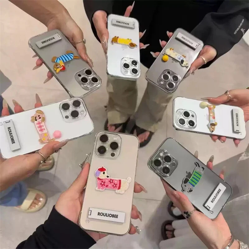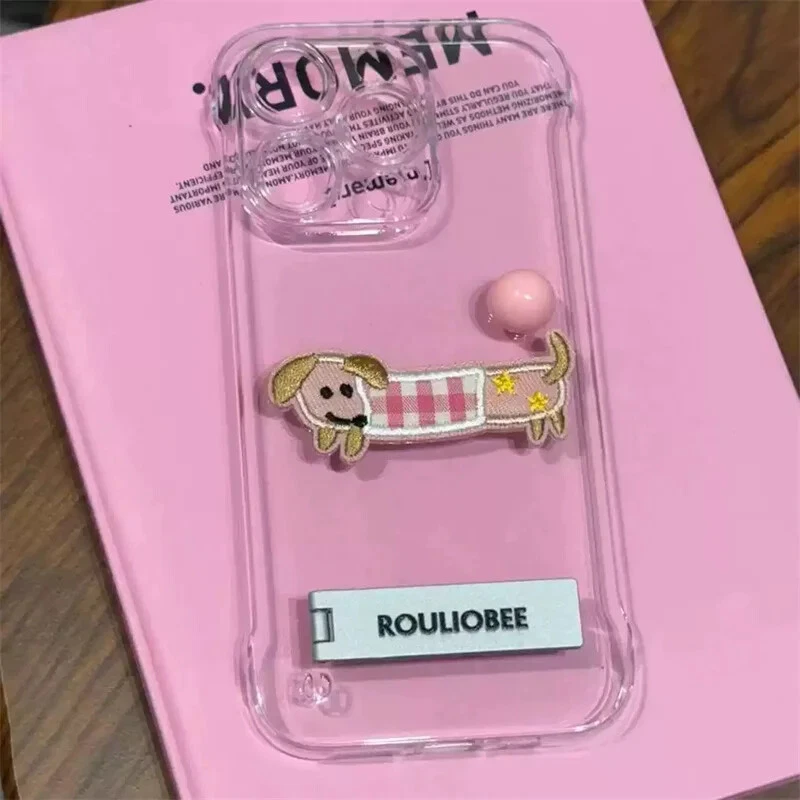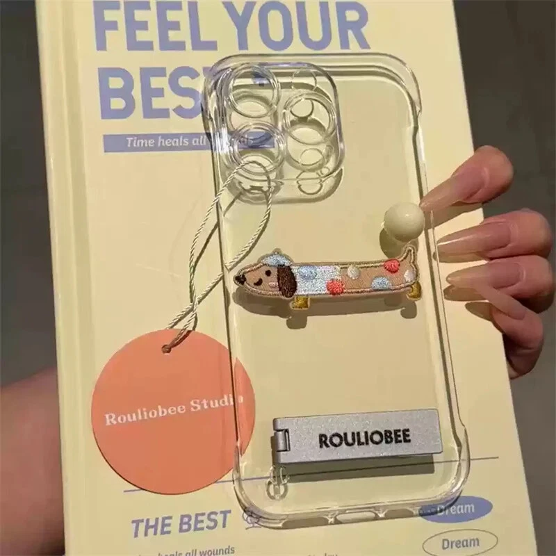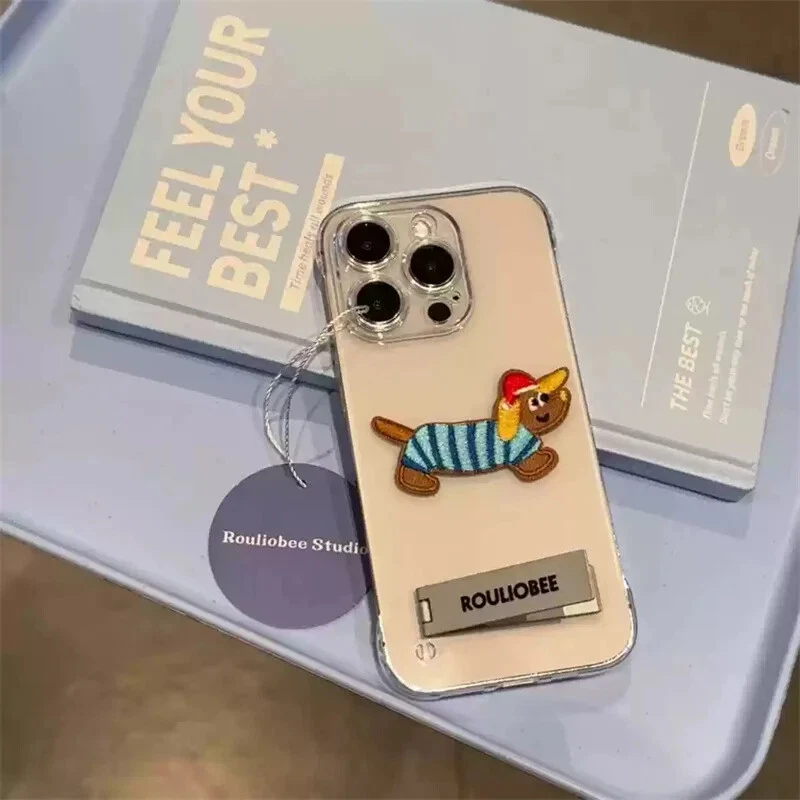 iPhone 15 14 13 12 11 Pro Max Dachshund Embroidery Metal Phone Case Holder