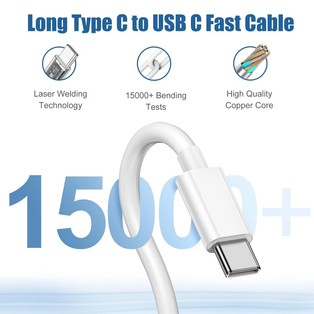 iPhone 15 Fast Charger/10ft Type C to C Cable Cord Long, USB C Charging Block/iPad Pro Wall Plug Power Adapter Cube Brick for Apple iPhone 15 Plus/15 Pro Max/12.9/11 inch/Air/Mini/4/5th/6 Generation Apple ipad Charger Compatible with USB C Devices: For Apple iPhone 15/15 Pro Max/15 Plus/15 Pro, 2022 iPad 10.9'' (10rd Gen)- Model A2696, A2757, A2777; -2021 iPad Pro 12.9'' (5th Gen) - Model A2378, A2461, A2379; -2020 iPad Pro 12.9'' (4th Gen) - Model A2229, A2069, A2232; -2018 iPad Pro 12.9'' (3rd Gen) - Model A1876, A2014, A1895; -2021 iPad Pro 11'' - Model A2377, A2459, A2301; -2020 iPad Pro 11'' - Model A2228, A2068, A2230; -2018 iPad Pro 11'' - Model A1980, A2013, A1934; -2020 iPad Air 4 10.9'' - Model A2316, A2324, A2325, A2072; -2022 iPad Air 5 10.9'' - Model A2589, A2591; -2021 iPad Mini 6 - Model A2567, A2568 【2Pack 20W Super Fast Charger】: 20W power delivery USB-C fast charger kit, 3 times faster than standard USB chargers. Charge iPad Pro up to 60% in just 30 minutes. Charging current up to 3A, save your time. Our charger support multiple fast charging technologies, PD 3.0, PPS, and QC 4.0. It provides super-fast charging for 2022/2021/2020/2018 iPad Pro 12.9/11/10.9 inch 5/4/3/2/1th Generation,iPad Air 5/4th,iPad Mini 6 Gen. 【Certified and Safety】:With the Apple MFi Certified chip, iPad fast charger automatic recognition the max current required by your devices. Multiple safety protections protect your ipad from over-current, over-voltage, over-heating and short-circuit, ensure the charging process is stable, safe, and efficient. 【Extra Long 60W USB C Charger Cable】: With 2Pack 10 Feet Type C to Type C ipad charger cord, long charging distance, fast charging. Built-in smart chip, no warning message will pop up, ensures that your USB C devices are loaded and charge safely and faster at maximum speed, latest-generation, future-proof fast charging technology, no error message pops up and works perfectly with your device while charging fast. 10FT Extra Long cable can give you more space to move while charging. 【Wide Compatible Devices】: Fast charging for most USB-C Devices, including for Apple iPhone 15/15 Pro Max/15 Plus/15 Pro, 2022 New iPad Air 5th, iPad Pro 12.9 in 5th/4th/3rd Generation(2021/2020/2018), iPad Pro 11 in 3rd/2nd/1st Generation(2021/2020/2018), iPad Air 4th Generation(2020), iPad Mini 6 Generation(2021), iPad 10rd Generation(2022), Note:Pls comfirm your ipad is usb c connector before purchase. Samsung Galaxy S23/S22/S22 Ultra/S22 Plus/S21/S21+/S10/S9,Note 20/10,LG and any other usb-c enabled devices. 【What You Get】You will get 2Pack 20W PD 3.0 Applicable Apple Charger Plug and 10 FT USB C to USB C Cable, 1-Years worry-free refund and replacement guarantee. if you have any questions, please feel free to contact us, we have confidence in our products and we are responsible to our customers,We promise to solve your problems within 24 Hours.(Contact method: "Account service" → "Order history" → "Contact seller") Shipping from the USA All of our products are shipped from the USA, ensuring quick delivery to your destination. Payment We offer the following payment methods: PayPal, credit card, bank transfer, and eBay's secure payment system. Free Shipping & Free Returns Shipping within the USA is FREE. Additionally, any return is absolutely free for you. Risk-Free Purchase You have the option to return an item within 30 days without any justification. We cover the return shipping costs! Fast Shipping We ship immediately upon receipt of payment. Generally, the package is delivered within 2-3 days in the USA. If it takes longer, we will contact you. Quality and Costs Made in Europe, USA, China No customs fees or additional charges Total satisfaction guarantee Invoice with declared VAT available upon request in .pdf format Feedback Your feedback is very important to us. After you pay for your purchase, you will automatically receive positive feedback from us.