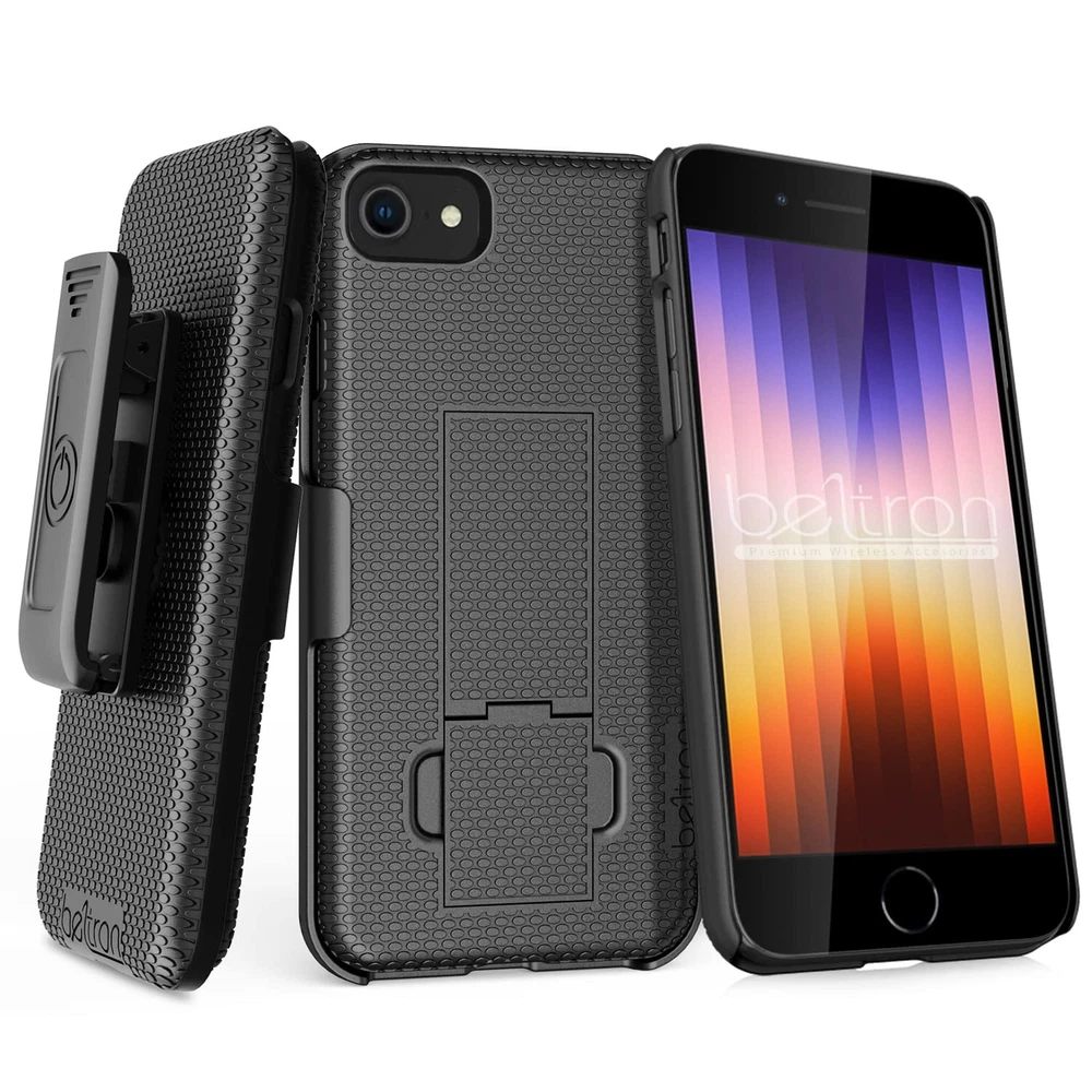 This Slim Protective Case & Swivel Belt Clip Holster Combo is designed and engineered exclusively for your smart phone. Raised lip guard ensuring your screen is protected. Precise port and button cutouts for easy access to all functions and controls. Microfiber interior lining to protect phone screen from getting scratched, fingerprint stains, lint, and dust, and on the outside, a soft-touch finish feel great in your hand. The holster has a built-in kickstand for the ultimate hands-free viewing solution. The belt clip holster & case combo features a super slim profile, rubberized weave finish and open button cutouts for easy access to all functions and controls on your iPhone 7 / iPhone 8 / iPhone SE 2020 / iPhone SE3 2022. Custom fit slim protective case designed to fit your iPhone 7 / iPhone 8 / iPhone SE 2020 / iPhone SE3 2022 like a glove. Securely slide in your smartphone design for convenient daily use, and durable rotating clip adjusts 180° for either right and/or left handed use. Microfiber interior lining to protect your phone's screen from getting scratched, fingerprint stains, lint, and dust. Built in kickstand for the ultimate hands-free viewing solution. Durable, reliable and lightweight, built to withstand everyday use in high activity environments. Order today and find out why Accessories are trusted by Police / Fire / EMS agencies and professionals nationwide. We're here to help! Please contact us should you have any questions or concerns regarding this product.