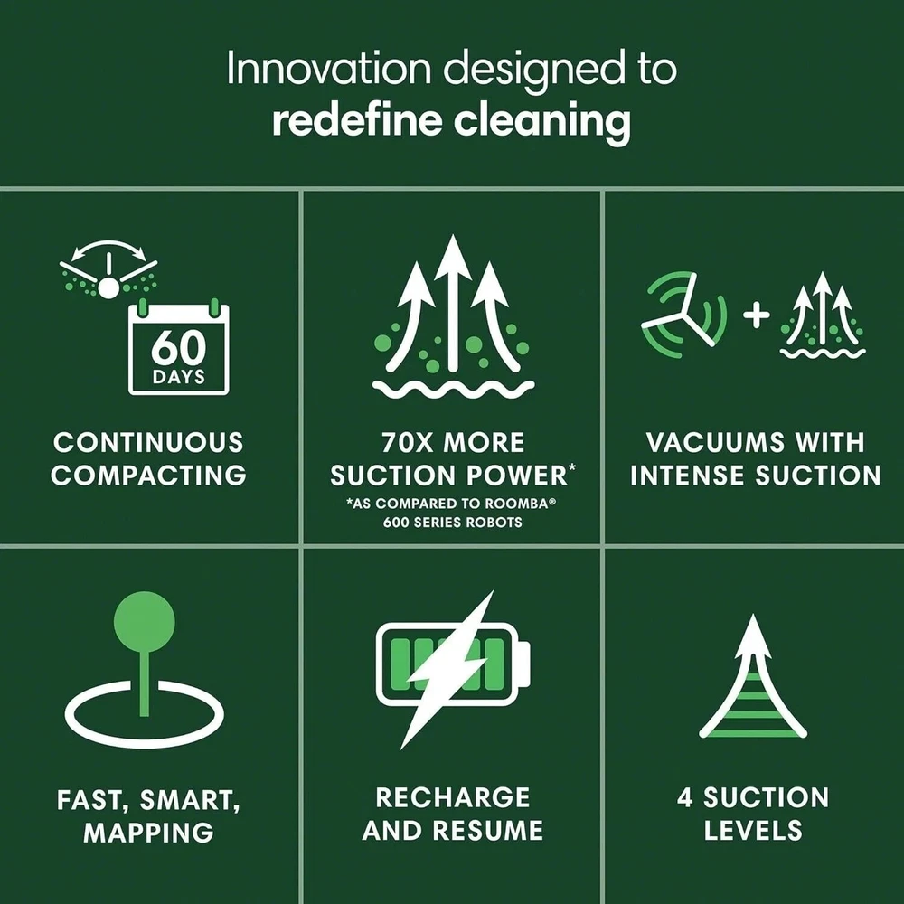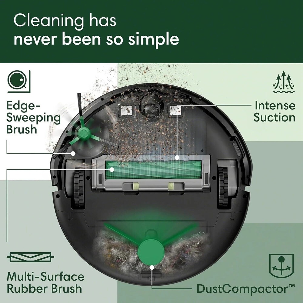 iRobot Roomba 205 Dust Compactor Vacuum - Auto-Compacts, LiDAR, Alexa, 60-Day Bin DITCH THE DOCK. An industry first, only from Roomba, this robot continuously crushes debris right inside using a mechanical compacting process, so you don't have to empty it for up to 60 days. A SLEEK SPACE-SAVER. When space is at a premium, onboard compacting and debris management eliminates the need for a separate self-emptying station. DEVOURS DIRT WITH 70X MORE POWER-LIFTING SUCTION. 3-Stage Cleaning includes 70X more power-lifting suction*, a Multi-Surface brush, and Edge-Sweeping brush to devour dirt and dust bunnies and leave floors barefoot clean. *As compared to Roomba 600 series robots SUPER-SMART MAPPING AND NAVIGATION. ClearView LiDAR sleekly hidden inside the robot quickly maps your home, avoids obstacles and cleans in neat rows, even in the dark. LEVEL-UP THE SUCTION. Choose from 4 levels of intense, dirt-devouring suction to apply just the right power to the cleaning task at hand. YOUR CLEAN, YOUR WAY. Schedule and target rooms based on your daily routine, skip unused areas, spot clean a mess, or repeat vacuum passes EASY-TO-USE ROOMBA HOME APP. Simply tap to set a custom clean, get time estimates, check on the filter life, or create keep-out zones to avoid vacuuming specific areas 3 EASY WAYS TO CONTROL. Conveniently control your Roomba robot by speaking to your preferred voice assistant-enabled* devices, tapping the app, or pressing buttons on the robot CLEANS STRONG CLEANS LONG. Feel confident the clean will be completed as the battery lasts for over three hours, But when it gets low, your robot automatically heads for a recharging and then returns to finish the task where it left off BLENDS IN BEAUTIFULLY. The Roomba 205 Dust Compactor robot's sleek look is inspired by modern design with beautiful finishes and textures that blend easily with home décor. Description DITCH THE DOCK. An industry first, only from Roomba, this robot continuously crushes debris right inside using a mechanical compacting process, so you don't have to empty it for up to 60 days. A SLEEK SPACE-SAVER. When space is at a premium, onboard compacting and debris management eliminates the need for a separate self-emptying station. DEVOURS DIRT WITH 70X MORE POWER-LIFTING SUCTION. 3-Stage Cleaning includes 70X more power-lifting suction*, a Multi-Surface brush, and Edge-Sweeping brush to devour dirt and dust bunnies and leave floors barefoot clean. *As compared to Roomba 600 series robots SUPER-SMART MAPPING AND NAVIGATION. Clear View LiDAR sleekly hidden inside the robot quickly maps your home, avoids obstacles and cleans in neat rows, even in the dark. LEVEL-UP THE SUCTION. Choose from 4 levels of intense, dirt-devouring suction to apply just the right power to the cleaning task at hand. YOUR CLEAN, YOUR WAY. Schedule and target rooms based on your daily routine, skip unused areas, spot clean a mess, or repeat vacuum passes EASY-TO-USE ROOMBA HOME APP. Simply tap to set a custom clean, get time estimates, check on the filter life, or create keep-out zones to avoid vacuuming specific areas 3 EASY WAYS TO CONTROL. Conveniently control your Roomba robot by speaking to your preferred voice assistant-enabled* devices, tapping the app, or pressing buttons on the robot CLEANS STRONG CLEANS LONG. Feel confident the clean will be completed as the battery lasts for over three hours, But when it gets low, your robot automatically heads for a recharging and then returns to finish the task where it left off BLENDS IN BEAUTIFULLY. The Roomba 205 Dust Compactor robot's sleek look is inspired by modern design with beautiful finishes and textures that blend easily with home décor.