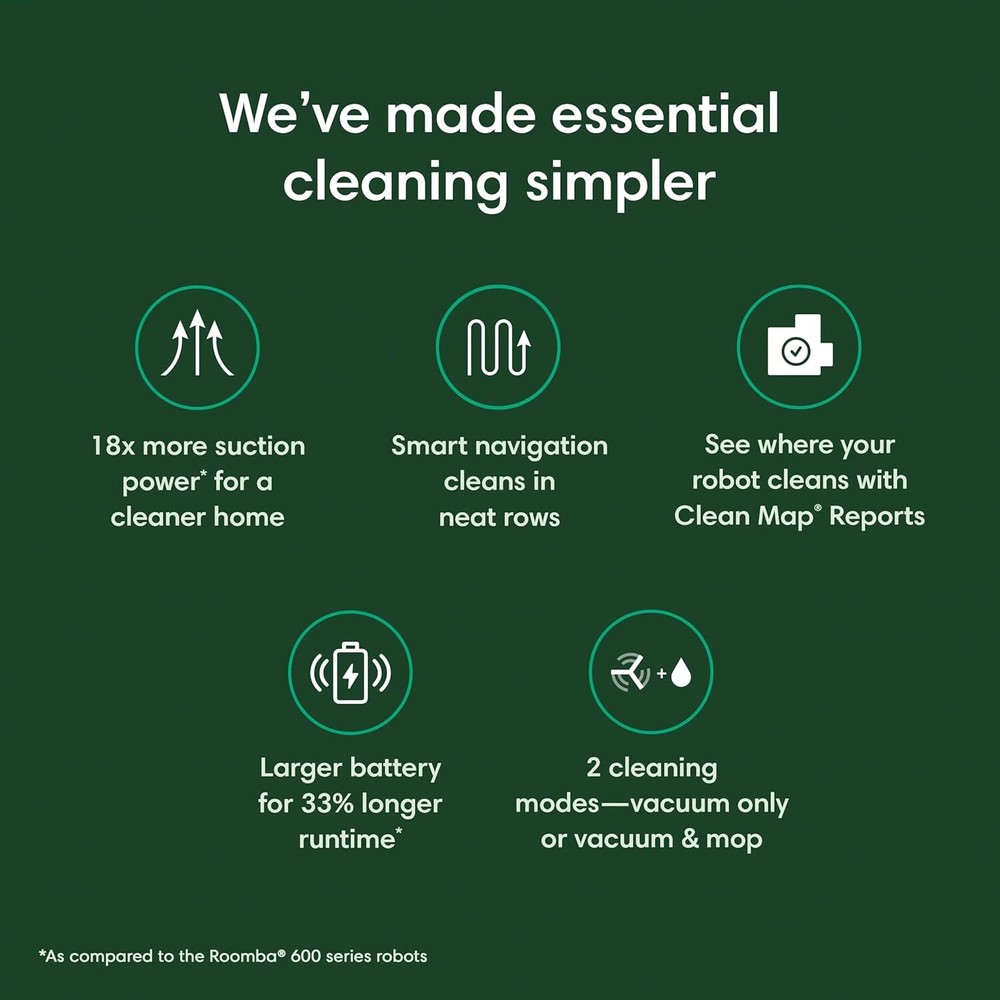 iRobot Roomba Robot Vacuum and Mop Combo (Y0140) - Vacuums and mops, Easy to use, Power-Lifting Suction, Multi-Surface Cleaning, Smart Navigation Cleans in Neat Rows, Self-Charging, Works with Alexa Item Description About this item A COMPLETE CLEAN WITH OUR 4-STAGE CLEANING SYSTEM. A powerful 4-Stage Cleaning System vacuums and mops in one pass with a special brush for edge cleaning so dust can't gather. NAVIGATES YOUR HOME LIKE A PRO. The smart navigation methodically cleans in neat rows, while sensors help it navigate around furniture and avoid falling down stairs. READY TO TACKLE DIRT RIGHT OUT OF THE BOX. Straight out of the box, it's easy to use. It only takes a few minutes to set up your robot and start cleaning. THOUGHTFULLY DESIGNED TO SIMPLIFY CLEANING. The iRobot Home App simplifies your life with features like Clean While I'm Away, suggested cleaning schedules, and a Clean Map report so you always know where your Roomba Combo Essential robot cleaned, even if you weren't home to see it. SMALL, SMART, AND ON A MISSION TO CLEAN. The sleek, low-profile design means it can slide into tighter spots and grab dust and dirt under beds and sofas, while the Edge-Sweeping Brush gets into your edges and corners. RECHARGES ITSELF SO YOU DON'T HAVE TO. Cleans for up to 120 minutes on a single charge and when its battery is low, this smart robot automatically returns to its charging station to recharge. A MOP YOU CAN COUNT ON. Dirt and dust disappear thanks to our built-in mop with a micro pump controlling water flow and keeping the mopping pad uniformly moist during cleaning. The washable microfiber mop pad is reusable for up to 30 uses and has three options for mopping water levels. CUSTOMIZED CLEANING. With 3 levels of suction power plus 3 different water level options for mopping, you get customized cleaning for your floors. EXTRA DIRT? SPOT CLEANING IS ON IT. Easily target the places where your floors need extra attention. With spot cleaning, your robot spins in place, cleaning in one spot for up to 2 minutes. FOR PROPER SETUP & OPERATION. The Roomba Combo Essential robot requires a 2.4 GHz network for setup and operation. After setup, keep your robot on 2.4GHz for operation; your phone can return to 5GHz. Show more › See more product details The Roomba Combo Essential robot is a 2-in-1 vacuum and mop, loaded with cleaning essentials and powered by iRobot OS. It has 3 levels of powerful suction plus mopping for a custom cleaning in a single pass. With a sleek, low-profile design and our Edge-Sweeping Brush, dirt and dust can't hide in corners or under your couch. The easy-to-use iRobot Home App provides control over your clean with favorite cleaning routines, personalized suggestions, and intuitive smart home integrations. While you kick back or go out, it can go to work on your floors. Payment We accept payment only through PAYPAL Shipping We ship products worldwide through standard express courier service, it will reach within 7 to 10 days to abroad buyers, we ship the product after recieved clear payment and give full information about shipment to the buyer Return We accept product return within 7 to 21 days from delivery date but product should be in original position and not in damaged condition,the return shipping charges will be buyer responsibility