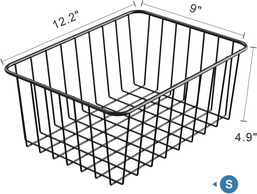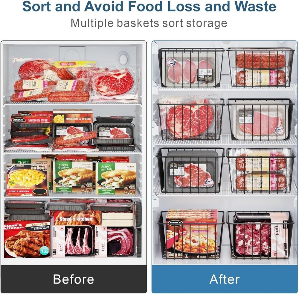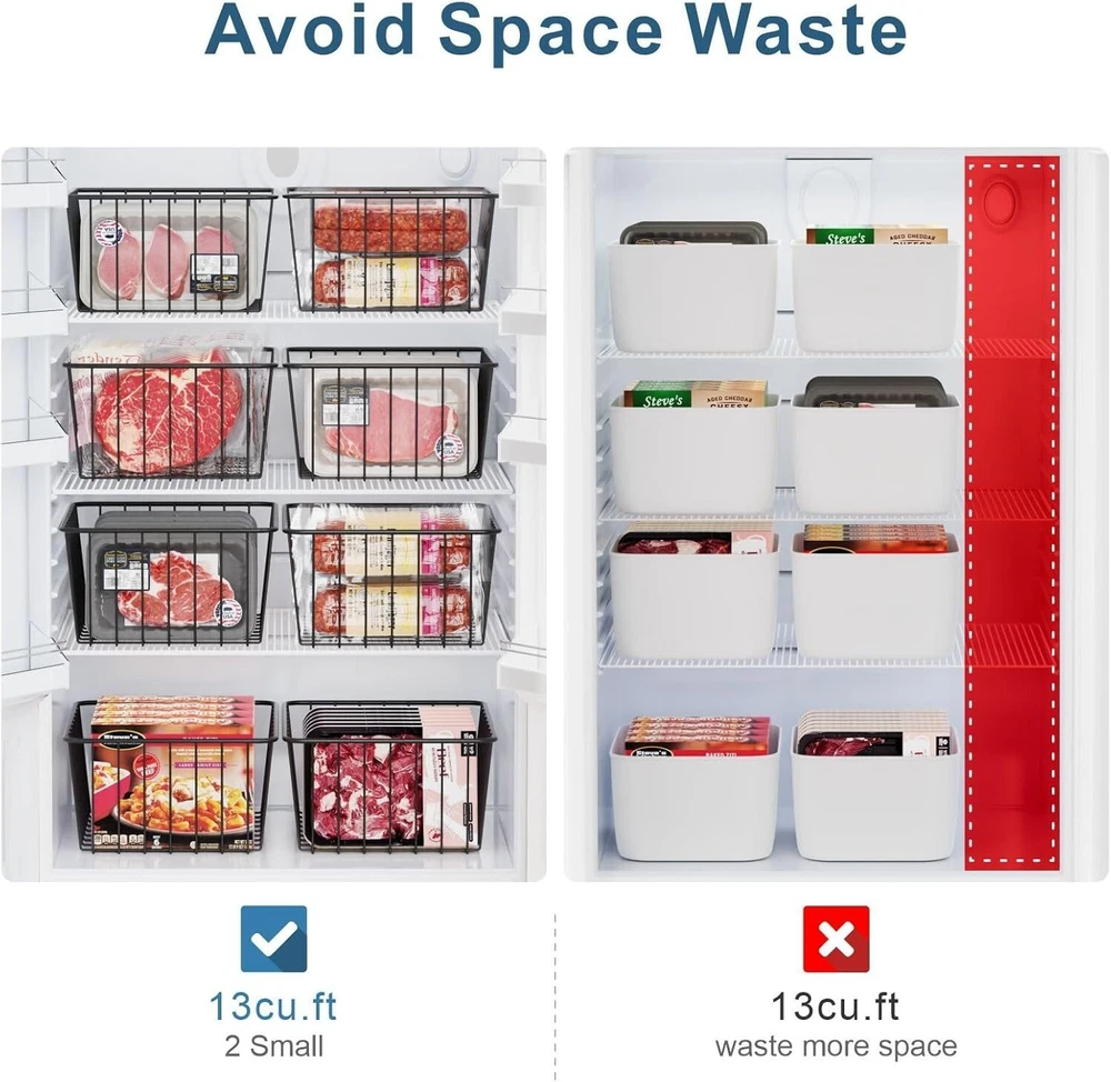Organize freezer contents efficiently with durable metal wire baskets. Enhance air circulation for faster freezing and maintain freshness, reducing food waste. • Set of 6 metal wire baskets • Black coating for durability • Space-saving design • Enhances air circulation • Suitable for freezer, fridge, or pantry • Easy-to-access line design