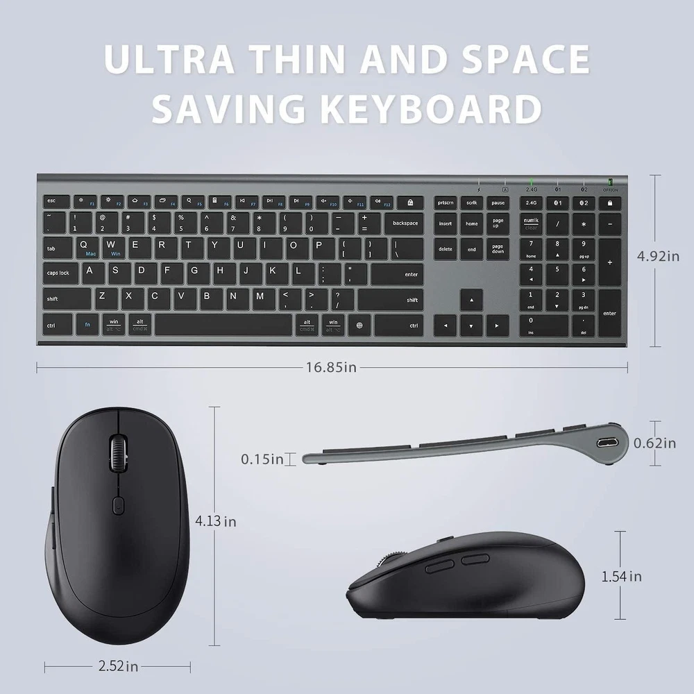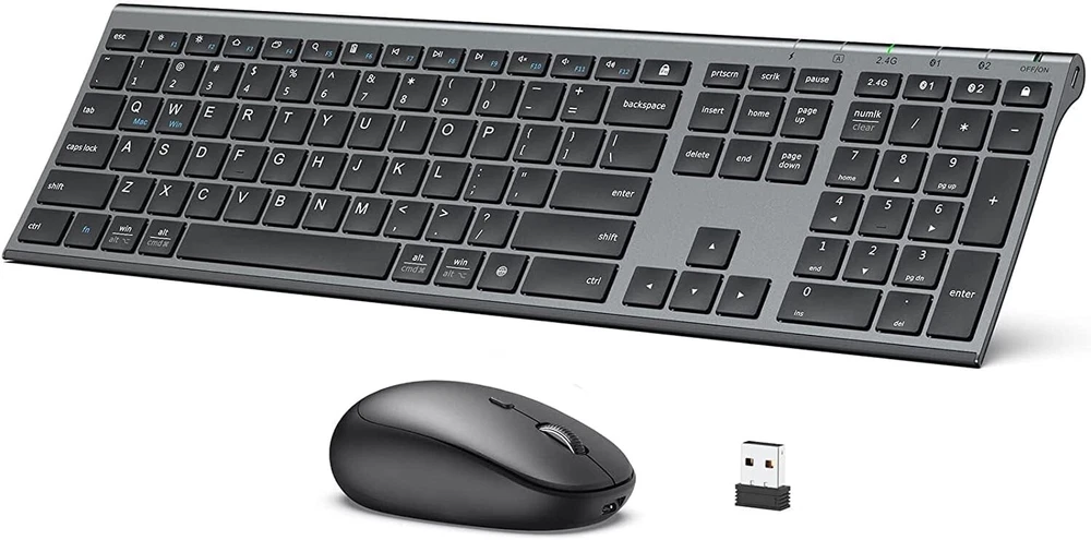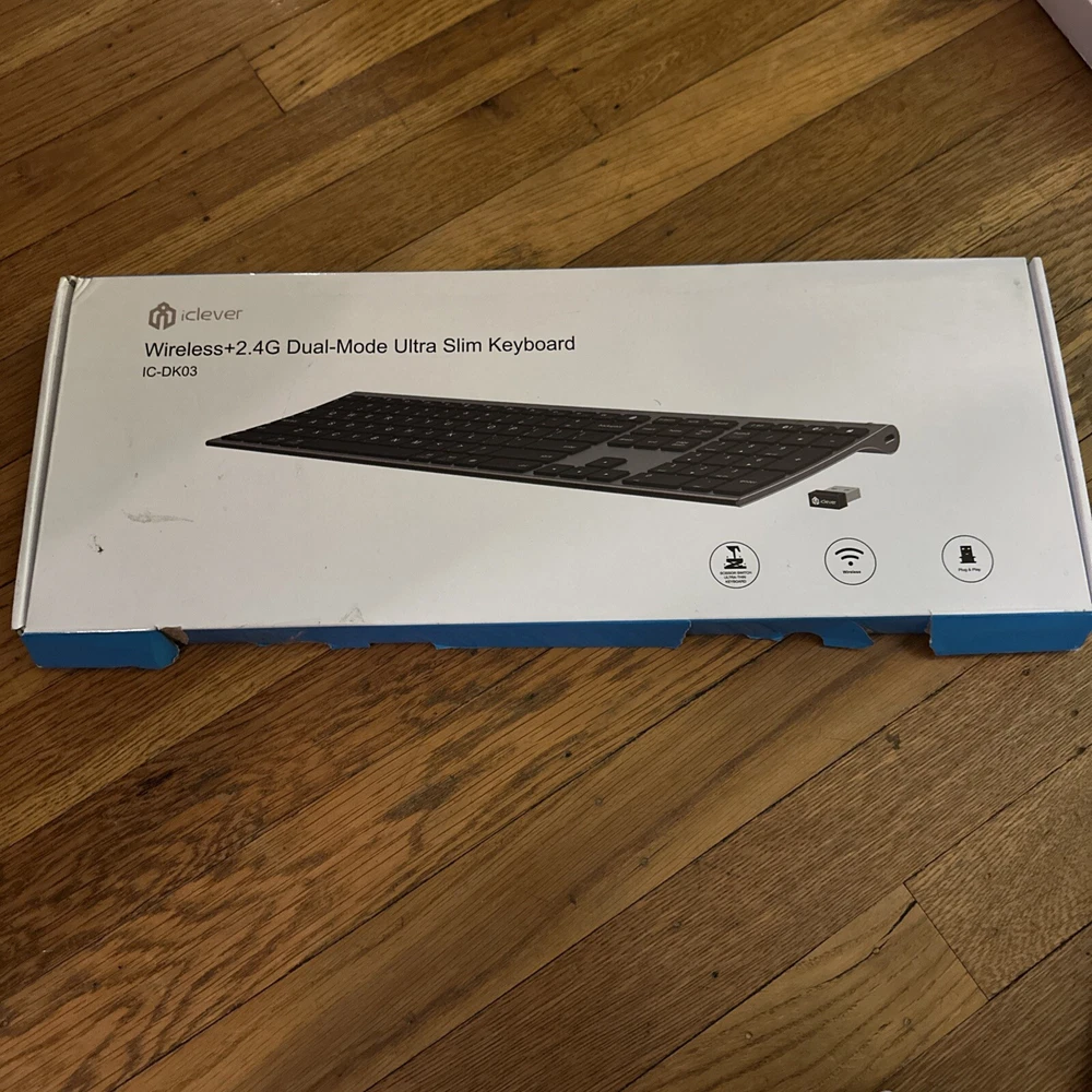 iclever IC-DK03 Wireless + 2.4G Dual Mode Ultra Slim Bluetooth Keyboard Free shipping Multi-Device Connection: Both keyboard and mouse are dual-mode designed and three channels enabled(Bluetooth channel *2 + 2.4GHz USB channel *1). Effortlessly realize quick and smooth switch between 3 devices by pressing a single button. Universal Compatibility: Fully Compatible with Mac, iOS, Android, Windows 7/8/10. Customers can select the corresponding system through the keyboard fn+Q/W. Rechargeable Battery Saves Energy: Forget the annoyance of having to change batteries with this bluetooth keyboard and mouse, which use lithium-ion battery to give you up to 90 hours of continuous use on a single charge. When you're not using them, both the keyboard and mouse will go on standby to save energy. Just click the mouse or hit any key of the wireless keyboard to wake them up. Ultra-Thin Full-Size Keyboard: The ultra-thin full-size keyboard has an independent number zone and multimedia functions. It is the most suitable keyboard for office work. The X-structure design of the keys is labor-saving, light-sounding, stable, and can accurately supplement every stroke. The bottom of the keyboard is designed with aluminum alloy, and at the same time, it adopts a special process to make the appearance thinner and more beautiful.