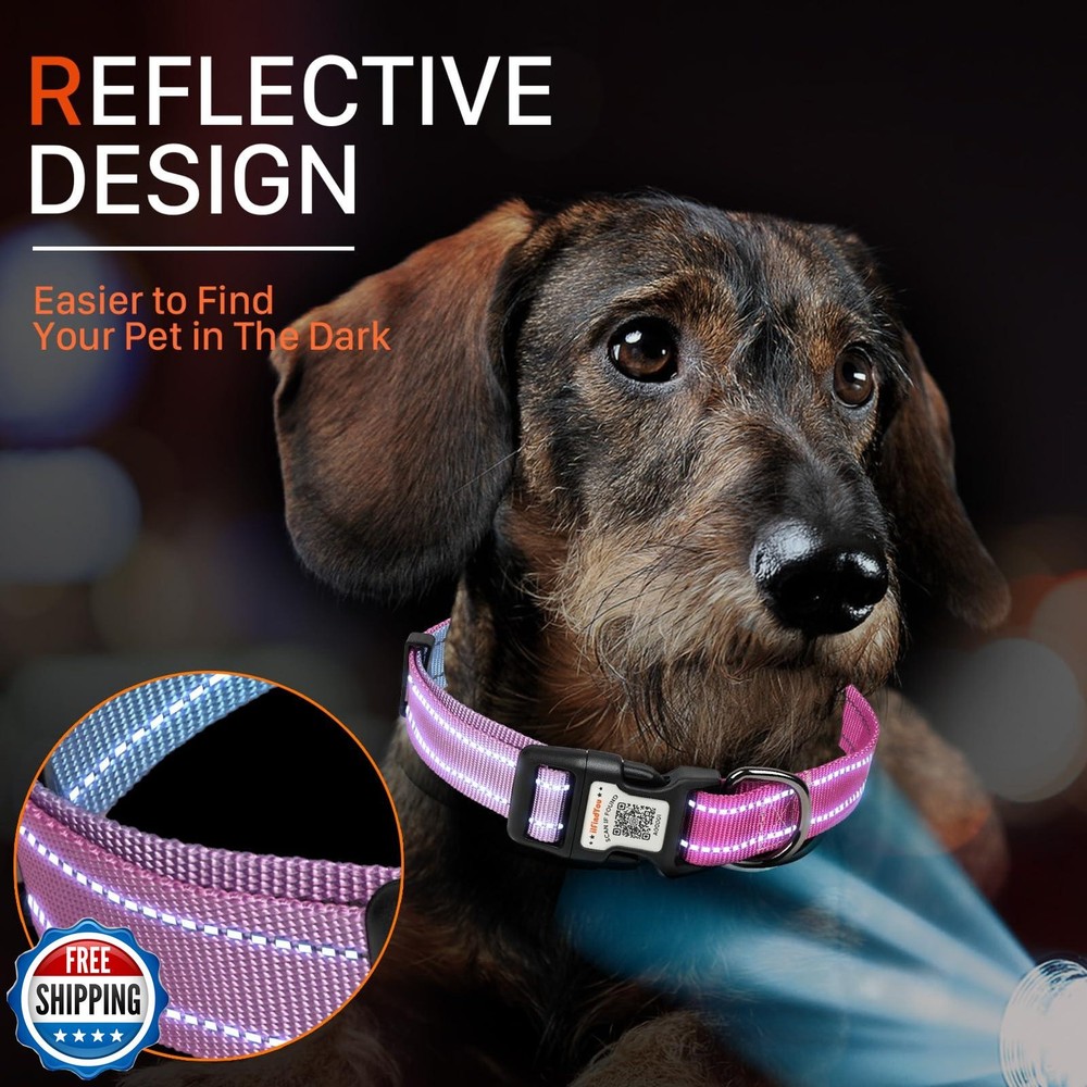 ilFindYou Reflective Dog Collars for Puppy Soft Nylon Blue-Rosered Gradient Sized XS Features Reflective: Reflective stitching make your pets more noticeable in dark, they are safer while jogging, running, or walking Comfortable and Durable: Dog collar is made of thick and breathable nylon, heavy duty construction ensures long-lasting use for active dogs Adjustable Wide Range of Sizes: XS: 5/8"W, Length 8"-12"; S: 3/4"W, Length 10"-15"; M: 1"W, Length 13"-22"; L: 1"W, Length 16"-26", Please measure the circumference of your dog's neck before purchasing Integrated Personalized Dog ID Tags: ilFindYou smart QR code dog tags personalized for pets contain modifiable pet online profile, emergency Info, multiple pet photos, when finders scan the QR code you will receive a real-time alert via email or phone call, It is not a GPS tracker Premium Packaging: ilFindYou dog collar is packaged in luxury box, can be a present given to pet Shipping Free & Fast Shipping: We offer free shipping to most of the USA with a normal delivery time of 3-7 days. However, due to the current situation, additional delivery time (up to 3 weeks) may be required for some items. Alternative Carriers: We may use alternative carriers (e.g., USPS, FedEx, UPS) to ensure your package arrives safely and on time. Due to the use of multiple carriers, we are unable to provide a tracking number automatically. Handling Time: Orders are processed and shipped within 1-2 business days of receiving cleared payment. Shipping Restrictions: Shipping to Alaska, Hawaii, Puerto Rico, Guam, and other US territories may incur shipping charges or delivery restrictions. Please contact us before ordering, or your order can be refunded/cancelled. State Restrictions: Certain items may not be shipped to California due to state regulations. Contact for Tracking Updates: If you require tracking updates or have any concerns about the delivery of your order, please feel free to contact us, and we will be happy to assist you. Return Policy 30-Day Hassle-Free Returns: If you are not completely satisfied with your purchase, you can return the item for free within 30 days of receiving it for a full refund or exchange. Easy Return Process: Contact us, and we will provide you with a prepaid return shipping label and detailed instructions. No Restocking Fee: There are no restocking fees for returns. However, the buyer is responsible for return shipping costs if the return is not due to a seller"s error. Refund Processing: Refunds will be processed within 1 business day of receiving the returned item in its original condition. Feedback Your feedback is extremely important to us. We strive to provide the best products and customer service possible. If you are satisfied with your purchase, please take a moment to leave us a positive review. If you have any concerns or issues with your order, please contact us before leaving negative feedback. We are committed to resolving any problems and ensuring your satisfaction. Contact Us If you have any questions or concerns, please feel free to reach out to our customer support team. You can contact us through the eBay messaging system. We are available Monday to Friday, 9:00 am to 5:00 pm EST, and we will do our best to respond to your inquiry within 24 hours. Thank you for supporting our small family business!