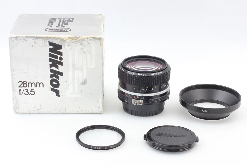 in Box [MINT w/Hood] Nikon Ai Nikkor 28mm f/3.5 Wide Angle MF Lens From JAPAN