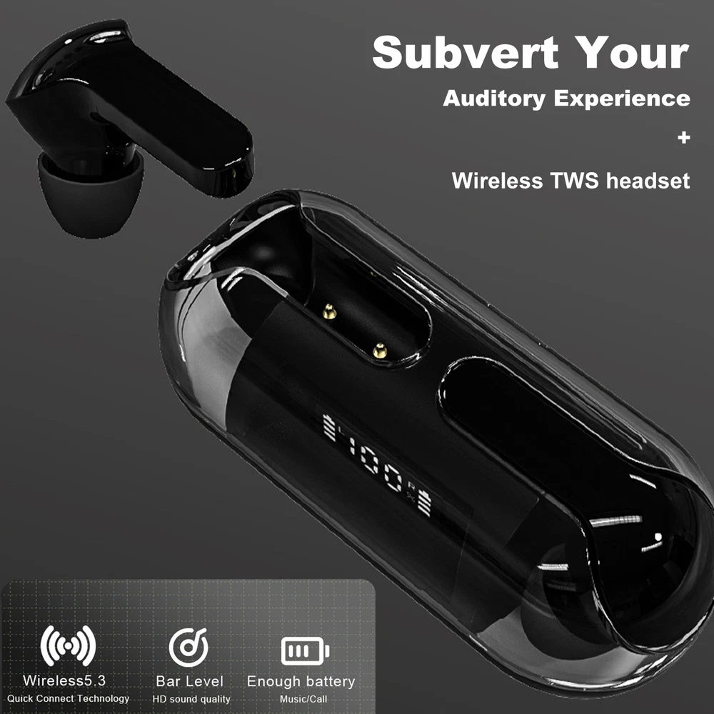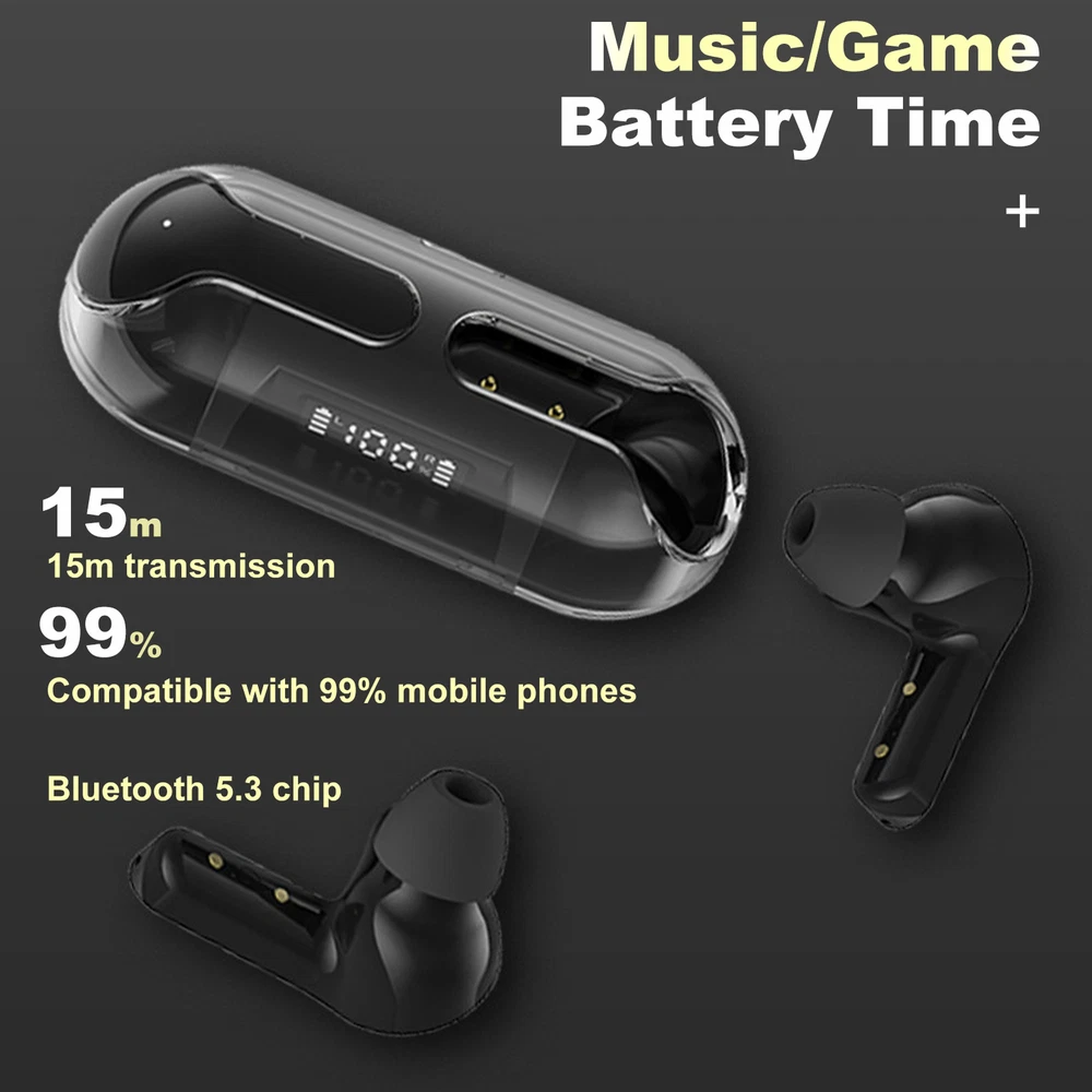 in-Ear Earbud Wireless Wireless Headphones in Ear Buds Digital Display fashion Bullet Points: Unique Design: Our wireless earbuds flaunt a transparent body that adds a touch of mystery to the sleek and modern design. The internal technology is visible, creating a sense of wonder and sophistication that sets you apart from the crowd Low Noise Work: With active noise reduction technology, these Wireless Ear Buds intensify audio clarity, keeping background noise at bay to provide no-distraction listening. Perfect for a focused work session or a peaceful music experience Improved Connectivity & Efficiency: Experience effortless control and enhanced efficiency with the digital display function of our wireless earbuds, displaying battery and connection status for easy tracking and monitoring Increased Wearing Comfort: Our Wireless Ear Buds are engineered with cutting-edge audio technology delivering high-quality and crystal-clear sound, making every beat more impactful, elevating your music listening experience Excellent Performance: Get ready to experience excellent sound quality with our wireless earbuds that offer professionally tuned audio driver units, ensuring lossless transmission and clear, delicate, and full sound restoration Experience the perfect blend of technology and style with our Wireless Earbuds. Featuring a fashionable appearance, ergonomically designed earplugs and noise cancelling technology, you can enjoy a clear, delicate and full sound quality while creating a quiet and focused listening environment. The easy-to-use digital display function makes it easy to control your earbuds with ease. Specifications: Wireless version: 5.3 Power-on prompt: English Wireless distance: within 10 meters Earphone material: ABS Earphone battery: 35 mAh Charging case: 200 mAh Talk time: about 3 hours Music time: about 3 hours Channel: Stereo Charging case: about 7x3x3cm/2.76x1.18x1.18 inches Earphone weight: 7g Charging case: 27g Charging port: Type-c Packing List: 1* Wireless Earphones with charging case 1* Charging cable 1* Chinese and English manual Note: Due to different lighting and screen settings, the item color may be slightly different from the picture. Due to different manual measurements, please allow a 1-2cm difference in size. Payment should be completed within 2 days after auction closed, or unpaid dispute will be filed for an closing auction. An unpaid case will be filled after 4 days ● We strive for 100% customer satisfaction ! ● Positive Feedback is very important to us. ● We hope that you contact us immediately BEFORE you give us neutral or negative feedback, so that we can satisfactorily address your concerns. ● We promise to offer the lowest price and high quality produce. Our working time: Monday to Friday (9:00 am to 18:00pm)(Beijing Time) Saturday (9:00 am to 12:00am),except International Holiday. Dear buyers : ● Welcome to my store ! ● Your satisfaction is our top goal,we appreciate your patronizing. ● If you have any questions, please contact us before leave negative or neutral feedback, we will try our best to solve the issue to your satisfaction, thanks ! ● If you are satisfied with our service, please rate the details of the transaction (Detailed Seller Ratings) on eBay. ● Please always talk to us via ebay Message . ● We appreciate your business and look forward to growing our e-Bay sales with satisfied customers.