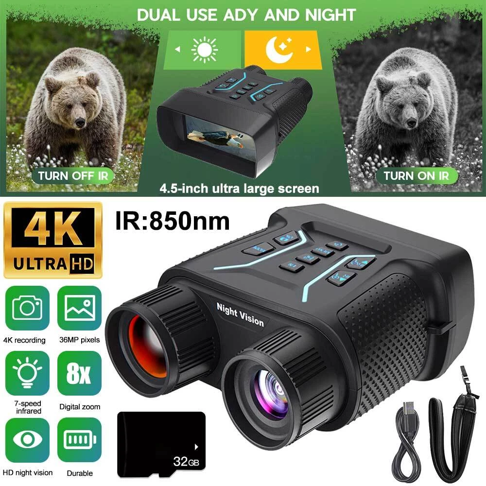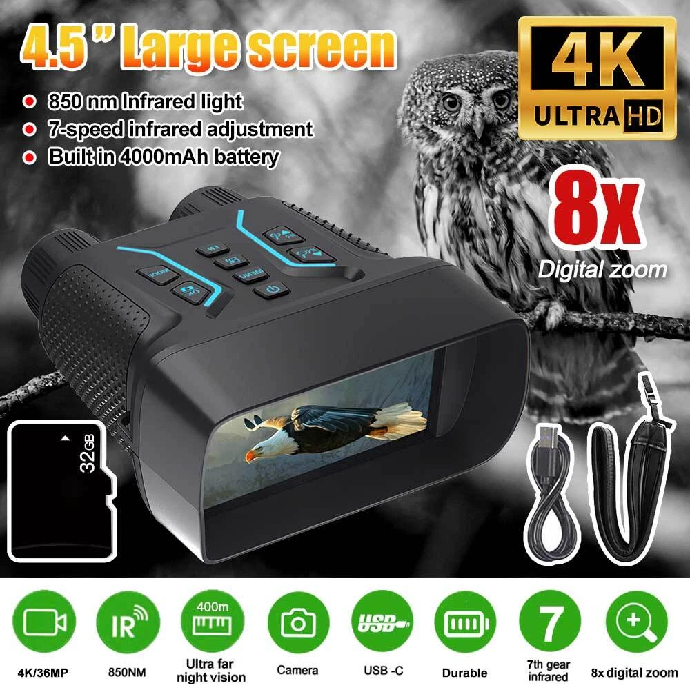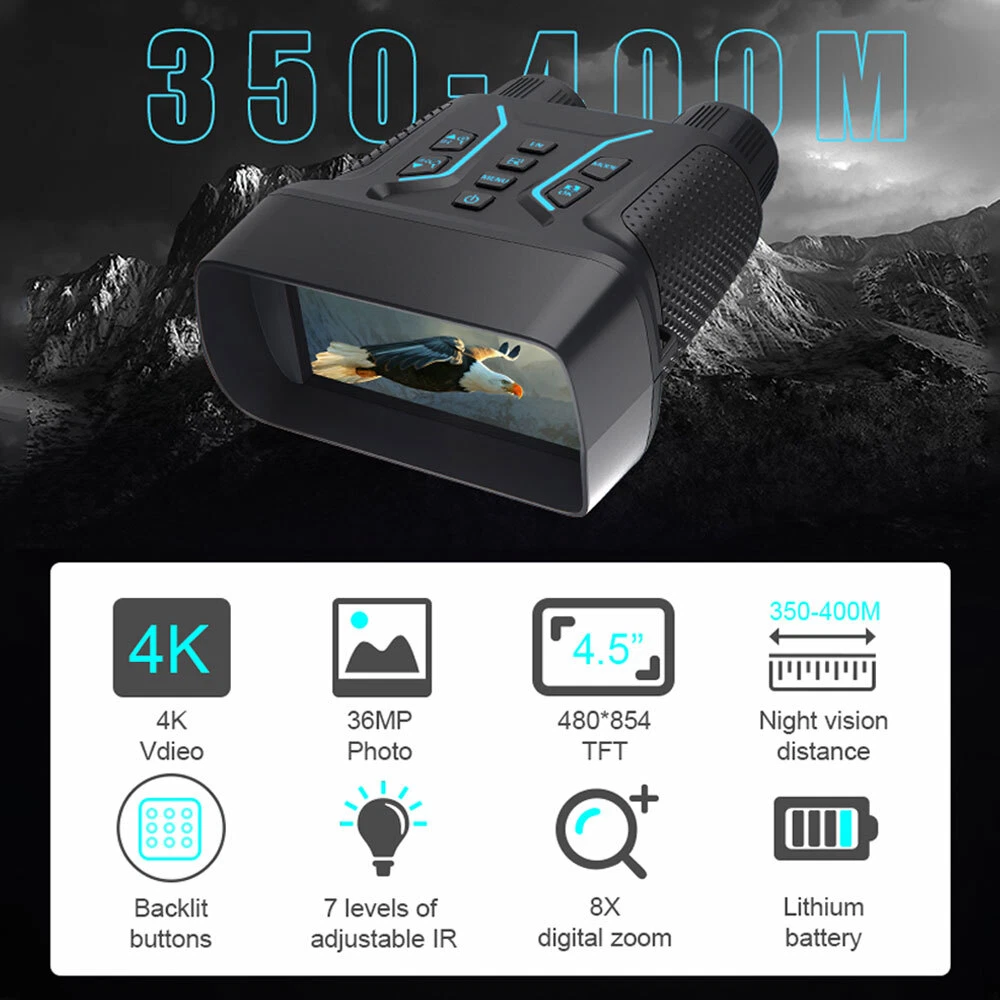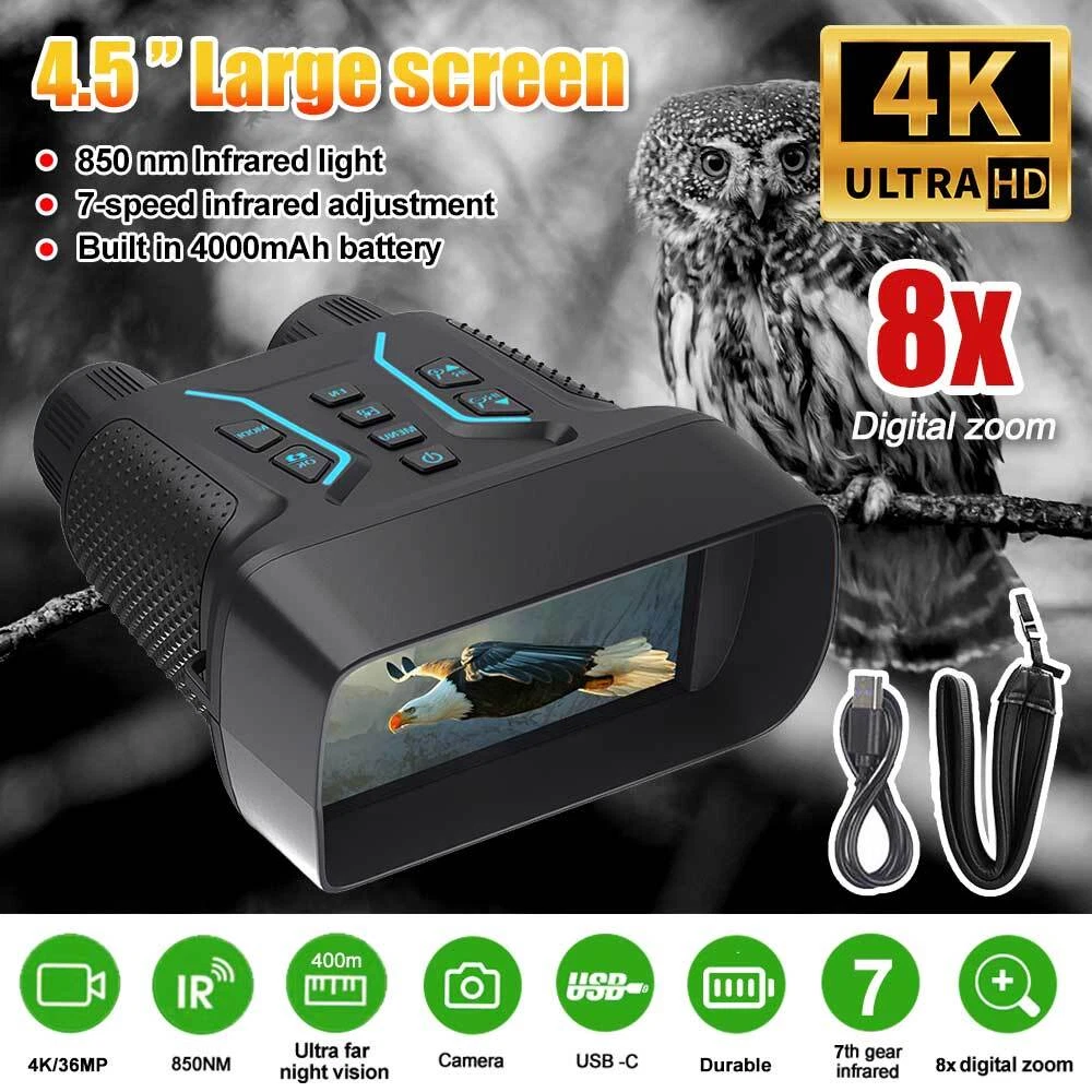 You may also like 1/2 PACK Headlamp COB LED Rechargeable Headlight Torch Work Light Bar Head Band 6.78 USD Free shipping 30mm 25.4mm 1" Scope Ring Mount Rifle Dovetail 11mm 20mm Picatinny Rail 3.99 USD Free shipping UV Ultra Violet LED Flashlight Blacklight Light 365nm Inspection Lamp single USB 3.99 USD Free shipping MLock Aluminum Rail Section Picatinny Weaver Rail Section 3/5/7/9/11/13 Slots 5.99 USD Free shipping SolarStorm 8000LM Bike Headlight Headlamp Road Bicycle Front Light 2X U2 LED 21.99 USD Free shipping 10-50A AMP 12V Automatic reset Circuit Breaker & Cover Dual Battery Fuse IP66 US 2.99 USD Free shipping NEW 177 .22 to .50 Caliber Rifle Gauge Boresight Green/Red Dot Beam Bore Sighter 12.99 USD Free shipping 6 Way 12V 32V Auto Marine Car Power Distribution Blade Fuse Holder Box Block 13.88 USD Free shipping UV Ultra Violet LED Flashlight Blacklight 395/365nM Inspection Lamp Torch Mini 3.99 USD Free shipping 365nm-395nm UV Underwater 3x Light LED Scuba Diving Flashlight Torch Battery 23.99 USD Free shipping US Plug Power Charger Adapter 8.4V/1A For LED Bike Light Battery Pack 3.99 USD Free shipping Rechargeable USB LED Light Flashlight Lamp Mini Torch Pocket Keychain Waterproof 1.99 USD Free shipping 2pcs Scope Bubble Level for 34mm Tube Riflescope Anti-cant Hunting 8.89 USD Free shipping Scope Barrel Mount 1" - 25mm & 30mm Ring Adapter with 20mm Weaver Picatinny Rail 7.89 USD Free shipping Alloy Rifle Scope Laser Bubble Spirit Level for 25.4/30mm/34mm Ring Mount Holder 8.89 USD Free shipping Mini Laser Pointer Pen White+Red Light Visible Beam Lazer For Office Pet Cat Toy 3.99 USD Free shipping Mini LED Flashlight Portable USB Pocket Light Torch Outdoor Camping Emergency 3.99 USD Free shipping 2X Bicycle Laser Rear Light Night Cycling Safety Warning Bike Rechargeable Lamp 21.99 USD Free shipping Product Description infrared Night Vision Goggles Digital Binoculars For Total Darkness Surveillance characteristic: 1.4K large screen full-color night vision device, 4.5-inch ultra large screen, brings a different visual feast. 2.350-400 meters night vision distance, backlit buttons allow you to easily use even in low light environments. 3.8x digital zoom, magnifies up to 8x from a distance, allowing for clear visibility even from a great distance. 4. Full black visible 1-7 level infrared fill light adjustment, 3W, 850NM strong infrared spotlight, the darker the night, the clearer. 5. Long lasting battery life, built-in 4000mAh battery, supports power supply or charging from a portable power bank 6. Adopting unique sealing technology, it can effectively prevent rainwater and can be used normally even on rainy days 7. Various application scenarios such as sports events/large-scale concerts/3D film shooting reconnaissance/security/patrol camping fun wildlife observation, etc Specifications: ♦ In complete darkness, a line of sight of approximately 350-400 meters ♦ 3 meters to infinity line of sight under low light ♦ 3W 850nm strong infrared spotlight, 7-speed infrared brightness adjustment ♦ 4.5-inch high-definition display screen ♦ 4K, 1080P video ♦ Starlight level infrared enhanced CMOS photosensitive chip ♦ Observation process can be photographed/recorded ♦ Built in 4000mAh large capacity battery for ultra long battery life Payment Shipping Terms Returns Contact Us About Taxes 1. We accept payment via PAYPAL ONLY . 2. Payment must be made within 4 days of auction closing. (Non-payment may result in a UPI (Unpaid Item) being put on your account. eBay will automatically close your account if you accumulate 4 UPI's total.) 3. TOTAL AMOUNT DUE includes the final auction price plus S&H(Shipping and Handling). 4.S&H will be determined based upon the SHIP TO address, Tax and customs. PLEASE NOTE: S&H DOES NOT INCLUDE DUTIES, LOCATL TAXES OR ANY OTHER IMPORTATION FEES. We are not responsible for any custom duty or import tax. 5. Please list your special requests (color, packages, etc.) in the PAYPAL NOTES SECTION when you make payment. Our working hours Beijing time from 9:00 a.m. to 18:00 p.m . Monday to Friday Item will be shipped from US/DE/UK warehouse;within 1 days after payment received, usually delivery time 24-72 hours. Warranty: 1. One Year Manufacturer's Warranty for defective items (excluding items damaged and/or misused after receipt). Accessories come with a 3-month warranty. 2.If buyer requests a return when there is no quality problem of the item he received,return postage has to be paid by buyer,and postage for the item won't be returned. 3.If item is damaged or defective on arrival,buyer can either requests a refund or replacement,and postage will be paid by us,meanwhile,the item must be returned. Note: A. Customs duties is neither included in the item value nor the postage,which should be in the responsibility of buyers. B. Please check with your country's customs office to determine what these additional costs will be prior to bidding/buying. 1. You have 7 days to contact us and 10 days to return it from the date it was received. WE WILL ISSUE YOU A REFUND OR REPLACEMENT ! 2. All returned items MUST BE in the original packaging and you MUST PROVIDE us with the shipping tracking number , specific reason for the return, and your eBay ID . 3. We will refund YOUR FULL WINNING BID AMOUNT, upon receipt of the item in its original condition and packaging with all components and accessories included, AFTER BOTH Buyer and Seller cancel the transaction from eBay. OR, you may choose to have a replacement. 4. Return shipping is to be paid by the Buyer . Our office hours are: 9:00 a.m to 6:00 p.m (GMT +8) of Monday to Saturday. And our office is closed on Sunday and public holidays (China). We apologize for the late reply during the holidays. Anything,please contact us by ebay message,we'll service you asap!!! 1. We maintain high standards of excellence and strive for 100% customer satisfaction! Feedback is very important to us. We request that you contact us immediatel