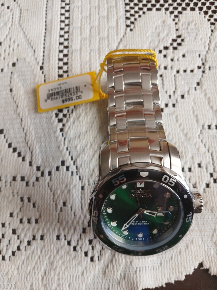 This Invicta Pro Diver wristwatch is a top-of-the-line timepiece with a stainless steel case and a Japan movement. Its trinite display is analog and provides accurate timekeeping. The watch is designed for diving and has a water resistance of up to 200 meters, making it suitable for professional divers. The model number is 39093 and it is a great addition to any watch collection.