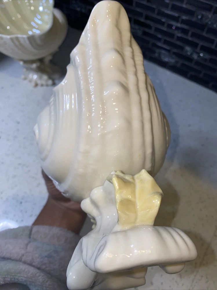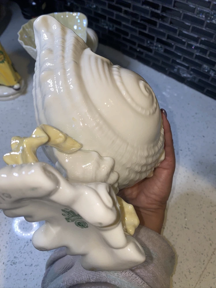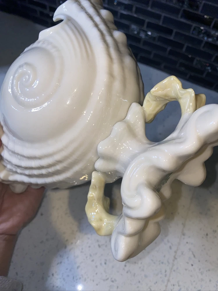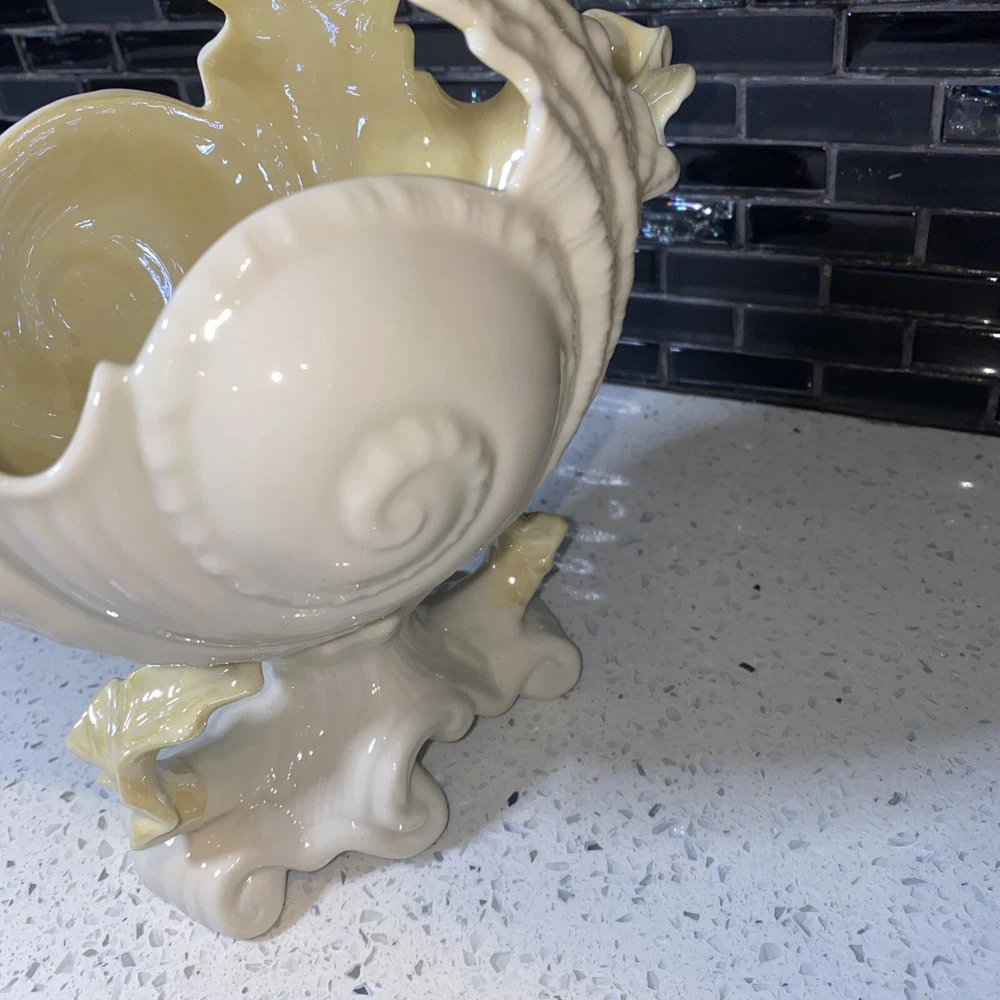 Pattern: NAUTILUS CONCH SEASHELL/SHELL Theme: Belleek Country of Origin: Ireland Size: Large Item Length: 4 in Material: Porcelain Features: Hand Painted Time Period Manufactured: 1970-1979 Color: WHITE WITH YELLOW INTERIOR Department: Adults Style: 1960s Finish: Glossy Subject: CONCH SHELL Type: LARGE 8 1/4" TALL CENTERPIECE VASE (SPOON WARMER) Brand: Belleek Number in Pack: 1