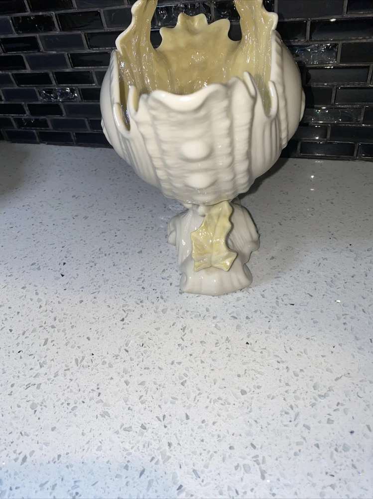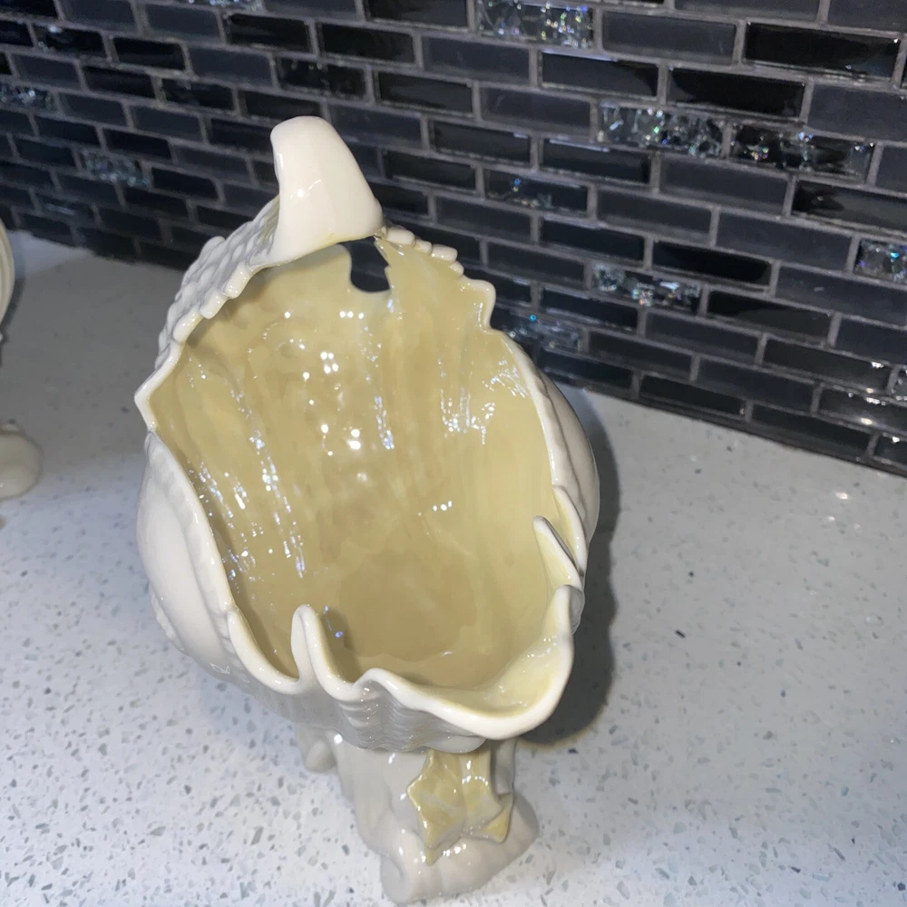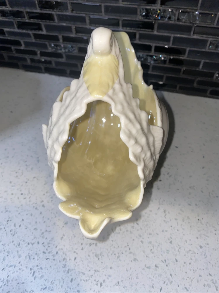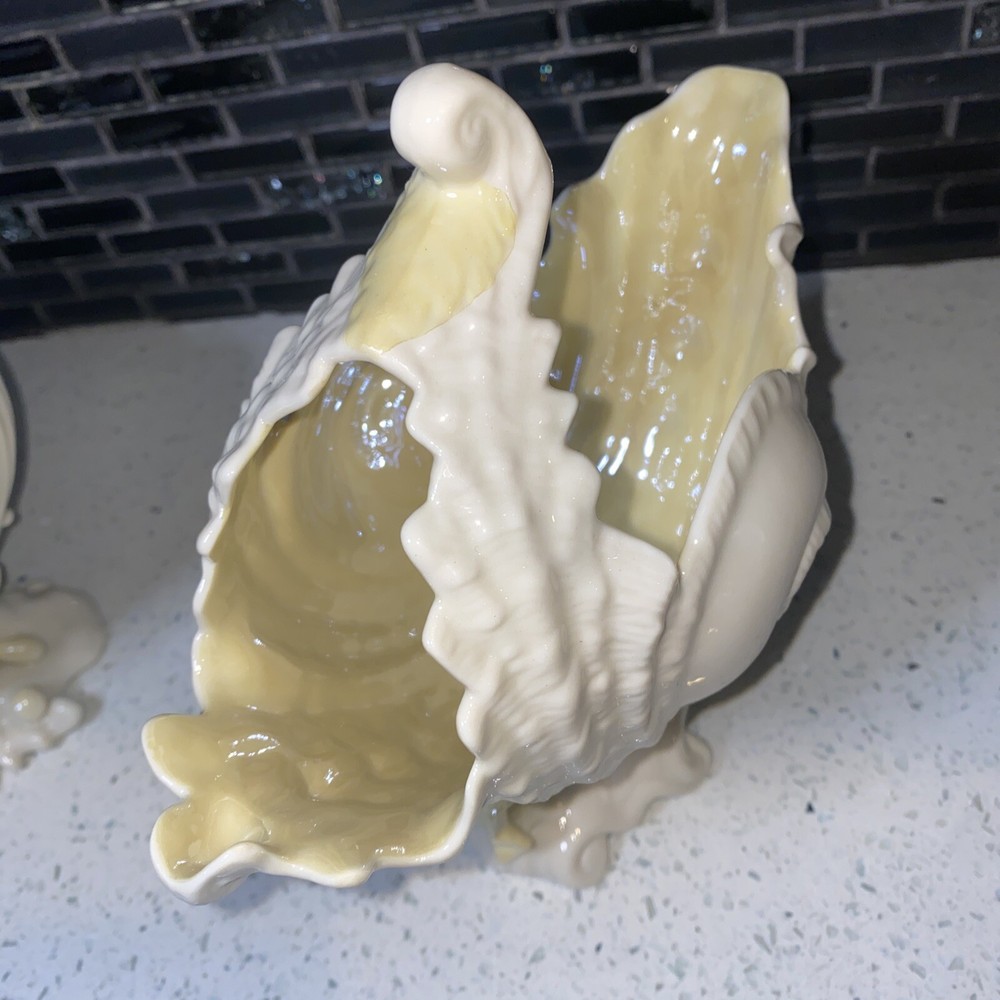 Pattern: NAUTILUS CONCH SEASHELL/SHELL Theme: Belleek Country of Origin: Ireland Size: Large Item Length: 4 in Material: Porcelain Features: Hand Painted Time Period Manufactured: 1970-1979 Color: WHITE WITH YELLOW INTERIOR Department: Adults Style: 1960s Finish: Glossy Subject: CONCH SHELL Type: LARGE 8 1/4" TALL CENTERPIECE VASE (SPOON WARMER) Brand: Belleek Number in Pack: 1