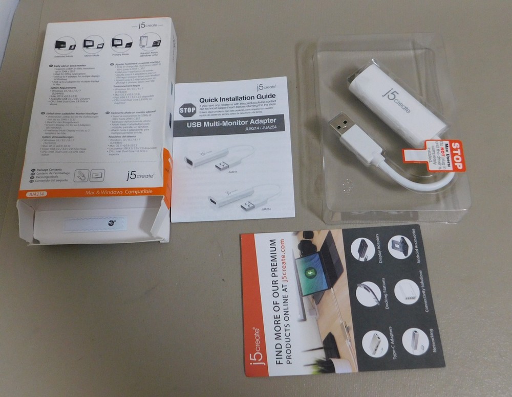 j5create USB to VGA Adapter Cable 1080p HD Multi-Monitor Display Windows Mac NIB Pictures of Open Box are for reference on item inside box. You will receive a NEW IN BOX Sealed package New in Box - Box may have some shelf wear - see pictures for actual condition. See pictures of the back of the box for more application information Please see all pictures as they are part of the description. This is the actual item that you will receive Please ask any questions prior to purchase I do combine shipping Please check Shipping Details for additional shipping methods offered. Costs may vary depending on your location
