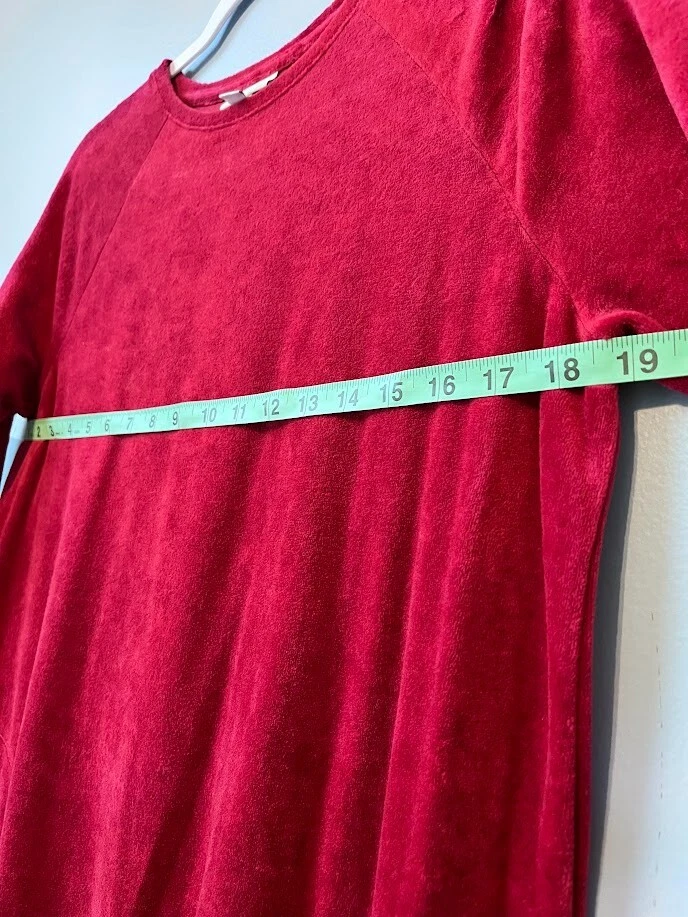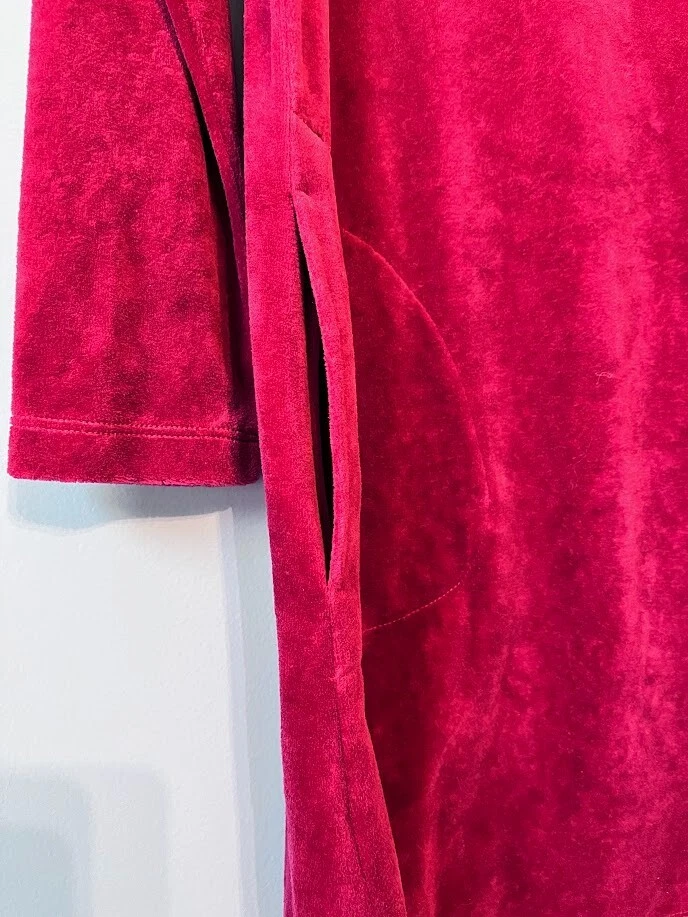 Wrap yourself in the luxurious feel of this J. Jill red velvet midi dress, a versatile addition to your wardrobe that combines comfort with timeless style. The dress features a classic crew neck and long sleeves, perfect for transitioning from day to evening wear. Crafted from a blend of cotton, modal, and polyester, the dress boasts a solid pattern that exudes elegance. Designed with practicality in mind, it includes pockets for convenience.