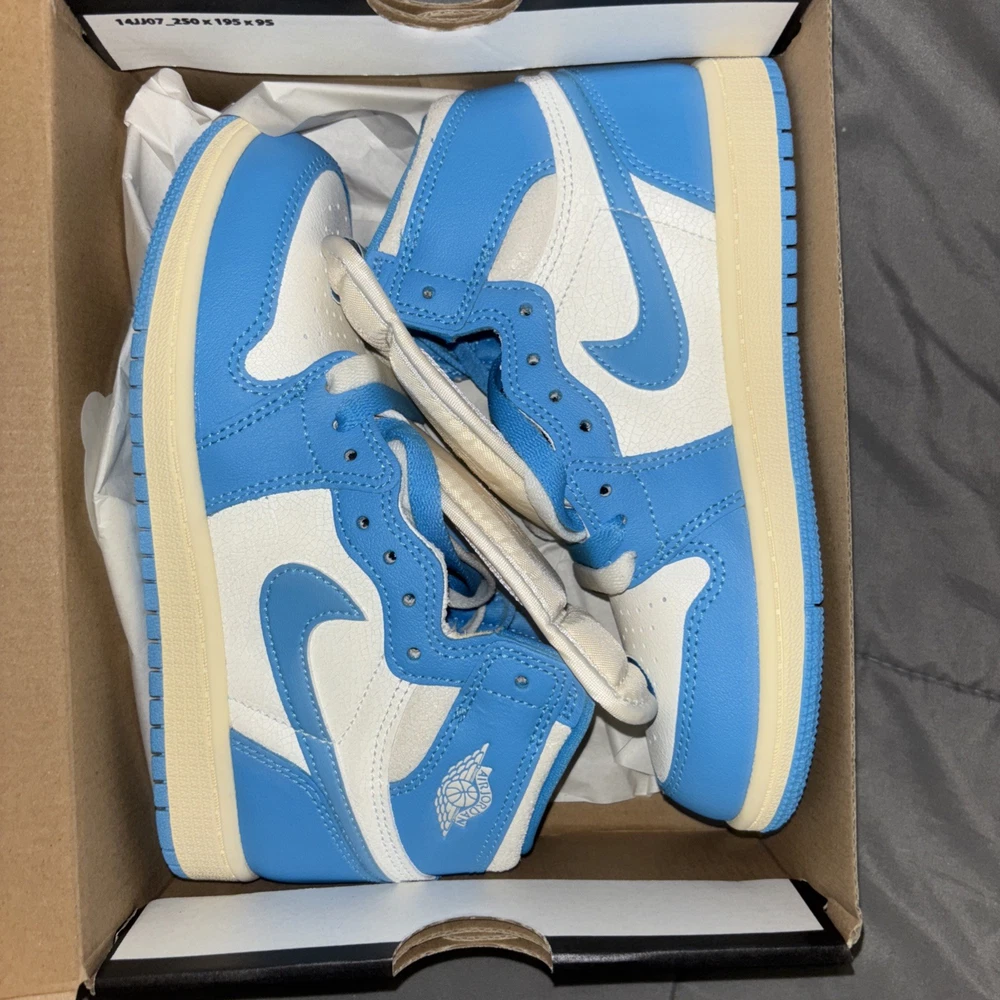 The product is a pair of Jordan 1 Retro High PS sneakers in size 2 for boys. These shoes feature a retro theme, making them a stylish and classic choice for young boys who want to rock the iconic Jordan brand. The high-top design offers both style and support, while the size 2 ensures a comfortable fit for active kids. Perfect for casual wear or sports, these Jordan 1 Retro High PS sneakers are a must-have for any young sneakerhead.
