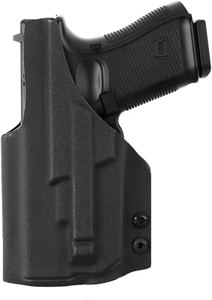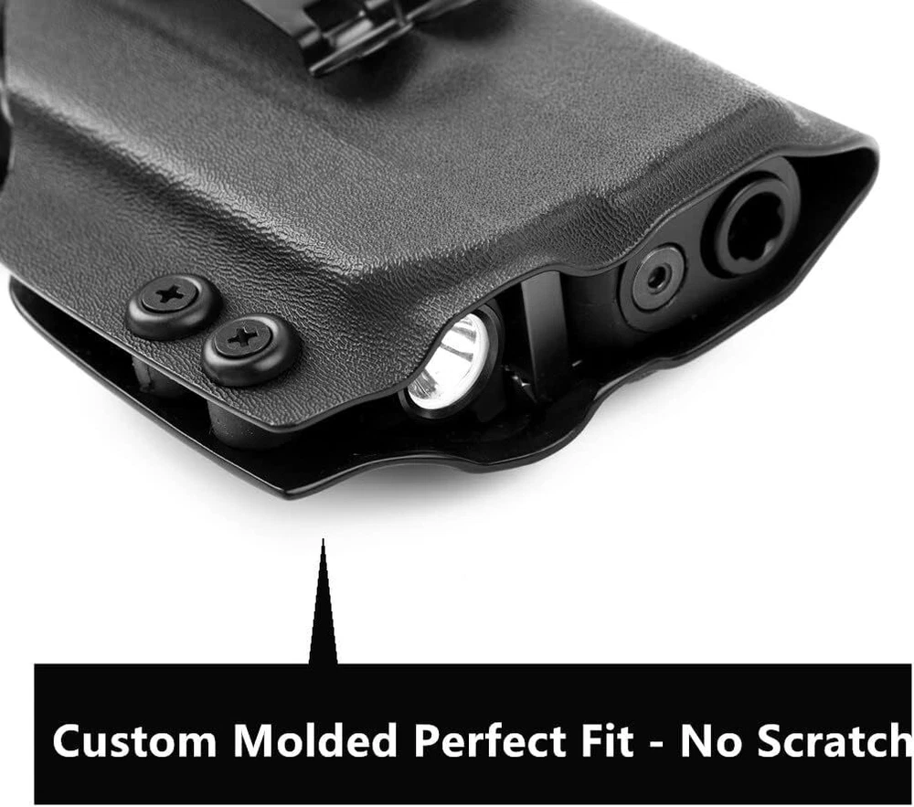 Holster for Glock and Taurus Models with Olight PL-Mini 2 Valkyrie Tactical Flashlight Perfect Compatibility This holster is a perfect fit for a wide range of popular models including: Glock 17, 19, 22, 23, 45 MOS (Gen 3, 4, 5) Springfield Hellcat OSP 3" Taurus G2C, G3C, G3, TORO All with the Olight PL-Mini 2 Valkyrie 600 Lumens Tactical Flashlight and Optics RMR Cut for Concealed Carry. CUSTOM FIT & EXCEPTIONAL STABILITY Designed with exclusive molding on both sides of the weapon, this holster provides a perfect fit, ensuring stability and functionality. The custom fit helps to securely hold your firearm in place, whether you’re carrying in a variety of positions. Durable & High-Quality Material Made from a 2mm thick material, this holster offers extreme toughness, sweat-proof, waterproof qualities, and resistance to impact and abrasion. It ensures that your firearm is well protected and easily accessible when needed. Enhanced Comfort and Versatility With an adjustable metal clip, this holster allows for inside-the-waistband (IWB) concealed carry in any position, providing comfort and flexibility. The adjustable click-in retention offers a secure, firm hold, and the smooth-polished finish along the edge adds a refined touch. Premium Protection This holster is designed for long-lasting use, giving you confidence that your firearm is secure while offering ease of access when needed. Whether for everyday carry or tactical purposes, this holster is built to meet all your needs with superior quality and design.