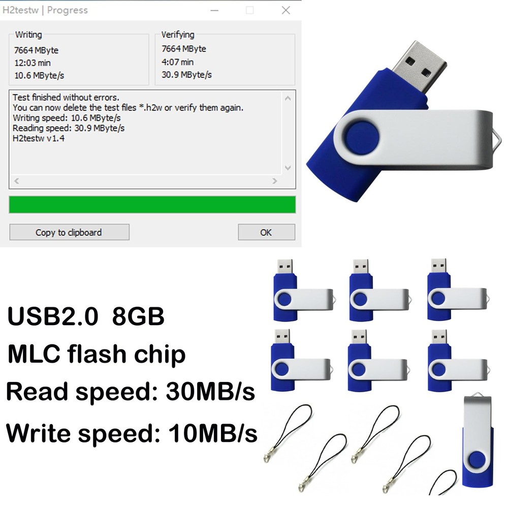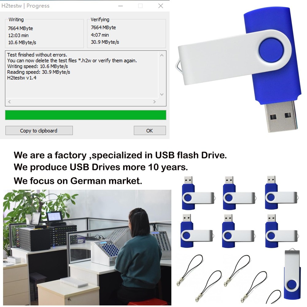 [1] Item:LL1002 [2] Color: Blue [3] Size: 2.28*0.75*0.39 Inches [4] Material: Aluminum+ ABS [5] Quantity: 100PCS [6] Capacity: USB2.0 8GB (MLC flash chip) [7] Write speed: 10MB/s [8] Read speed: 30MB/s [9] Package: poly [10] With 100PCS lanyards [11] Warranty: one year [12] Support windows7 / 8 / 10 / Vista / XP / 2000 / ME / NT Linux and Mac OS [13] We used H2 software to test all flash chips by copying machine. 8GB USB Flash Drive 100 Pack, thumb Drives Bulk: Read speed: 30MB/s; Write speed: 10MB/s, with a better MLC flash chip, passed H2 software test. So, we can do 1 year of the warranty. Bulk USB flash drives 8GB, plug then starts to transfer. Operating temperature range of 8GB thumb drive 100 Pack and cute flash drive 8GB. USB2.0 flash drives 8GB bulk USB drives 100 Pack and metal USB drive 8GB bulk are between -8℃ and 42℃, with 100 pieces lanyards. The metal material is Aluminum. 8GB 100 Pack pen drive USB stick 8GB 100 Pack and 8GB metal USB drives 100 Pack. The size is 2.28*0.75*0.39 Inches, it is easy to carry. You can use 8GB USB memory stick to copy the data files and to download the music. We are specialized in USB Flash Drive more 10 years. And we focus on German market on B2B. We can do customized logo for you.