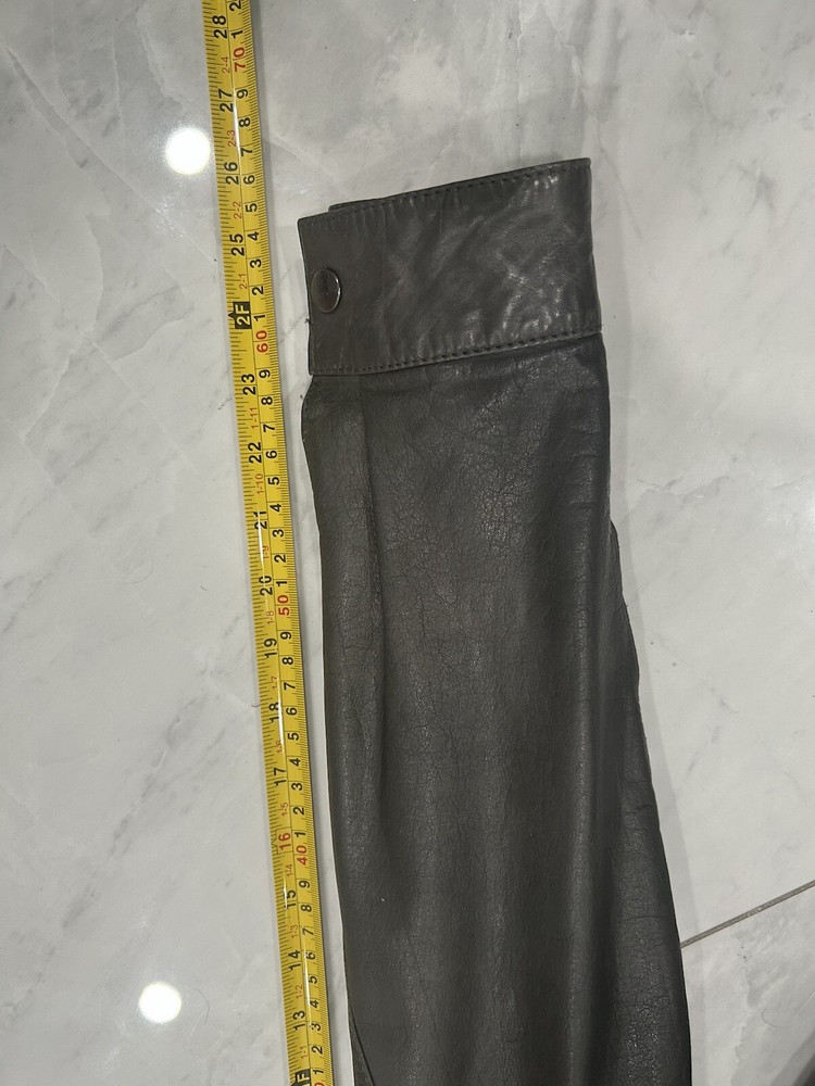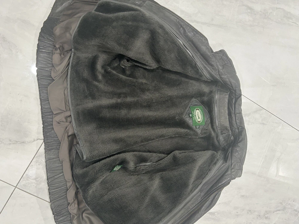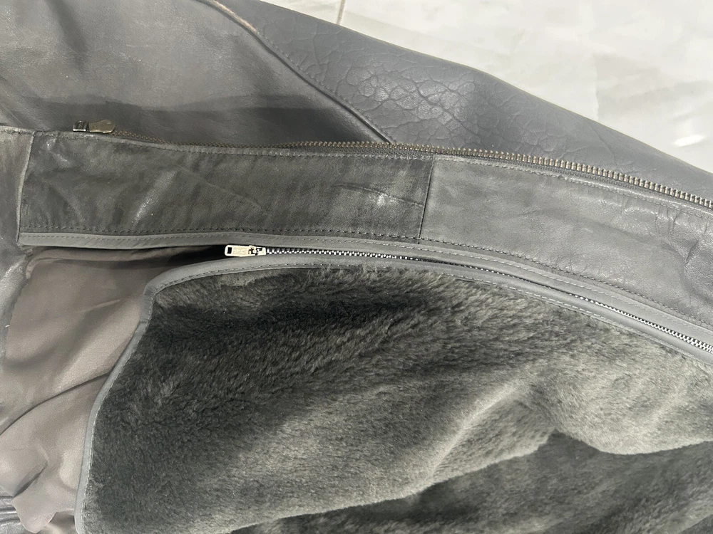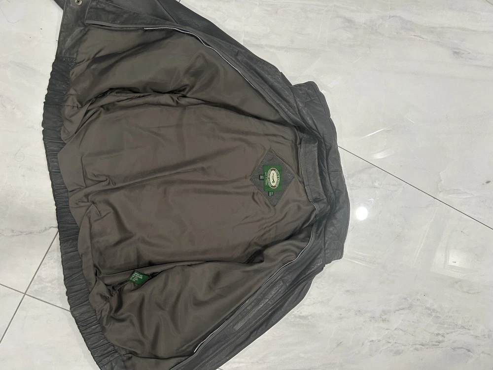 I have a beautiful leather jacket. The jacket fits cropped and has a fur liner that can be removed through a zipper, tag says it’s a size 40, and any questions let me know I’ll be happy to answer!