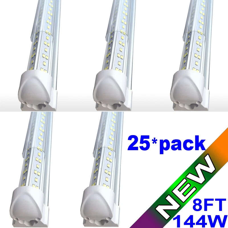 FAST DELIVERY - Ship from New Jersey or Los Angeles Warehouse via FedEx , 3-7 Days Delivered Your Door . SCIENTIFIC DESIGN - 8Ft LED Shop Lights Fixture is Made of 6500K Cold White SMD2835 LED Chip ,Plastic Clear Cover , Aluminum Bracket Housing ,and AC85-277V Constant Current Driver . It can work in -68F to 120F Temperature Conditions EASY INSTALLATION - The Integrated Tube Fixture Can be Install on Wall or Ceiling ,Easily Replace Traditional Fluorescent Tube Bulb . Plug and Play , Free Accessories (Power Cords, Connector , Extension Cords , Clip and Screw ) Come with Tube Lights Together WIDE APPLICATION - Linkable 8Ft Bulbs Widely Used in Garage Ceiling , Barbershop , Schools, Hospitals Basement , Factory Warehouses , Supermarkets Cooler Door , Offices, Shops,Hotels, etc led shop light 8ft 144w led Strip Lights 25PC Cold White LED Garage Lights 25pc FAST DELIVERY - Ship from New Jersey or Los Angeles Warehouse via FedEx , 3-7 Days Delivered Your Door . SCIENTIFIC DESIGN - 8Ft LED Shop Lights Fixture is Made of 6500K Cold White SMD2835 LED Chip ,Plastic Clear Cover , Aluminum Bracket Housing ,and AC85-277V Constant Current Driver . It can work in -68F to 120F Temperature Conditions EASY INSTALLATION - The Integrated Tube Fixture Can be Install on Wall or Ceiling ,Easily Replace Traditional Fluorescent Tube Bulb . Plug and Play , Free Accessories (Power Cords, Connector , Extension Cords , Clip and Screw ) Come with Tube Lights Together WIDE APPLICATION - Linkable 8Ft Bulbs Widely Used in Garage Ceiling , Barbershop , Schools, Hospitals Basement , Factory Warehouses , Supermarkets Cooler Door , Offices, Shops,Hotels, etc