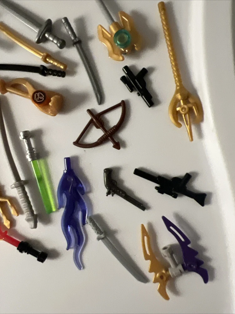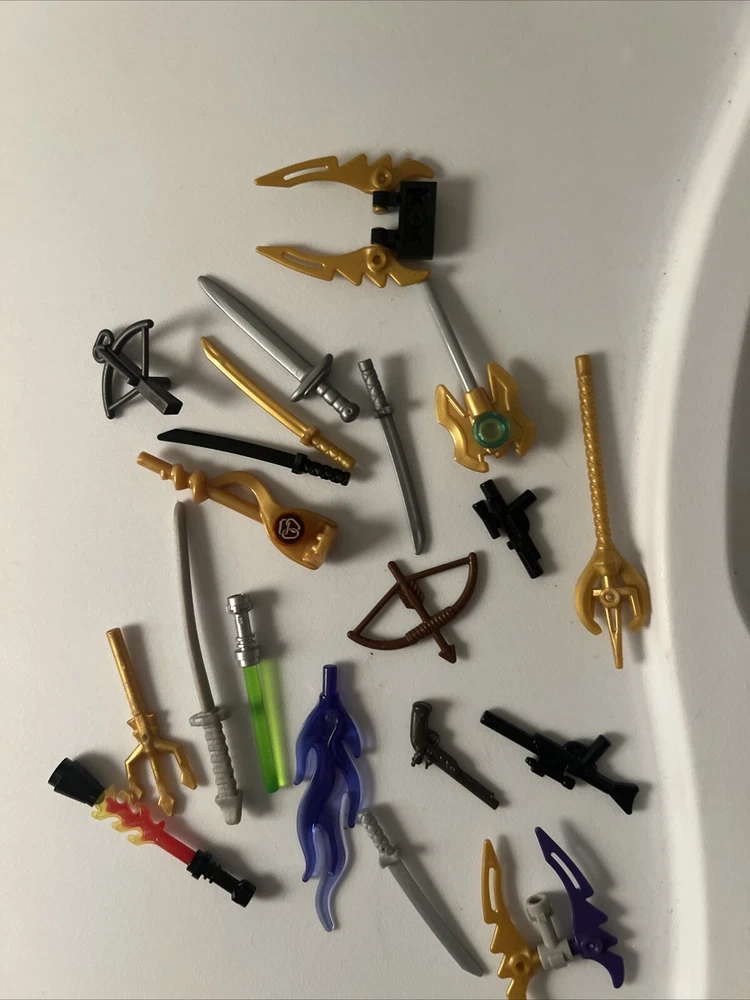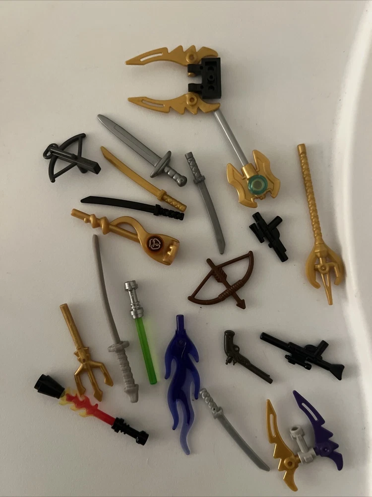 This lot of LEGO weapons is perfect for any collector or enthusiast. With a variety of pieces and parts, this lot is sure to have something for everyone. From swords to guns, this lot includes a wide range of LEGO weapons that are perfect for building and displaying. Each piece in this lot is made by LEGO, ensuring high quality and durability. Whether you're a collector or just looking for some unique LEGO pieces, this lot is sure to impress. Don't miss out on the opportunity to add these rare weapons to your collection!