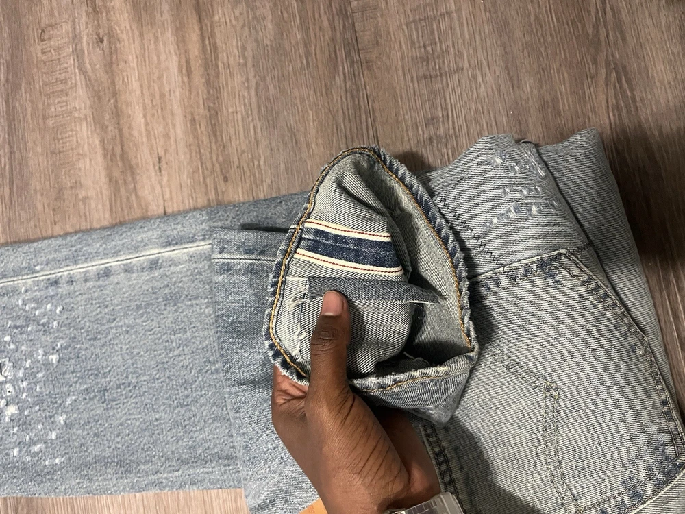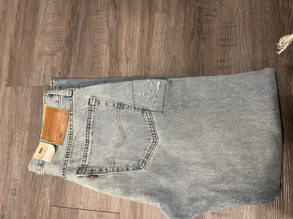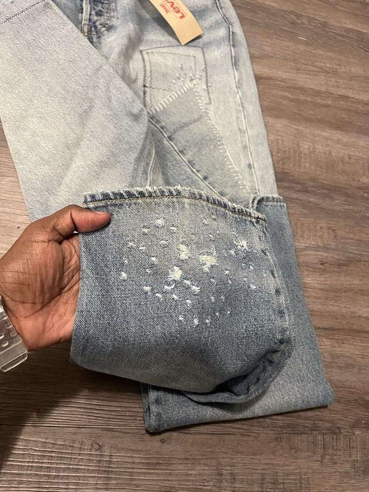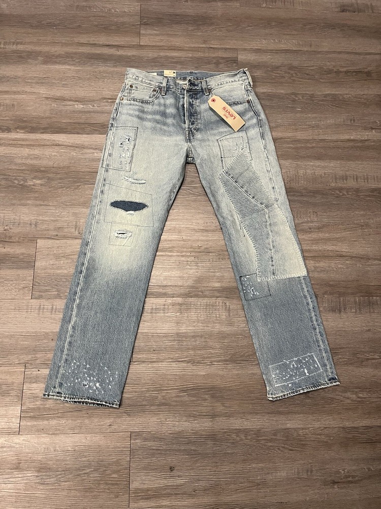 Elevate your denim game with these Levi's 501 Selvedge Patchwork Jeans. The unique design, made from repurposed selvedge fabric, adds a touch of nostalgia to your wardrobe. The regular fit and size 32 waist make them suitable for any occasion. Crafted by Levi's, a brand known for their quality and durability, these jeans are a must-have for any denim enthusiast. The model number Levi's 501 ensures that you are getting a classic and timeless product. Perfect for men who appreciate style and comfort, these jeans belong in every wardrobe.