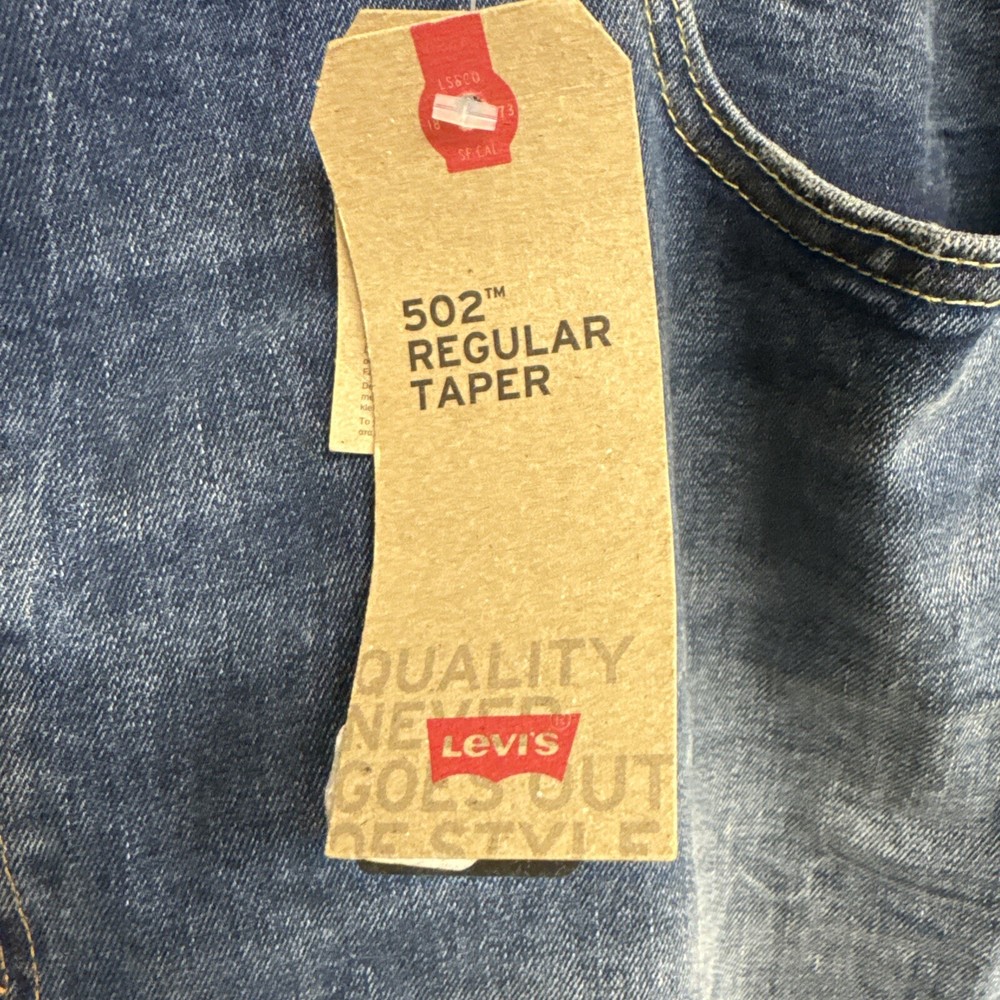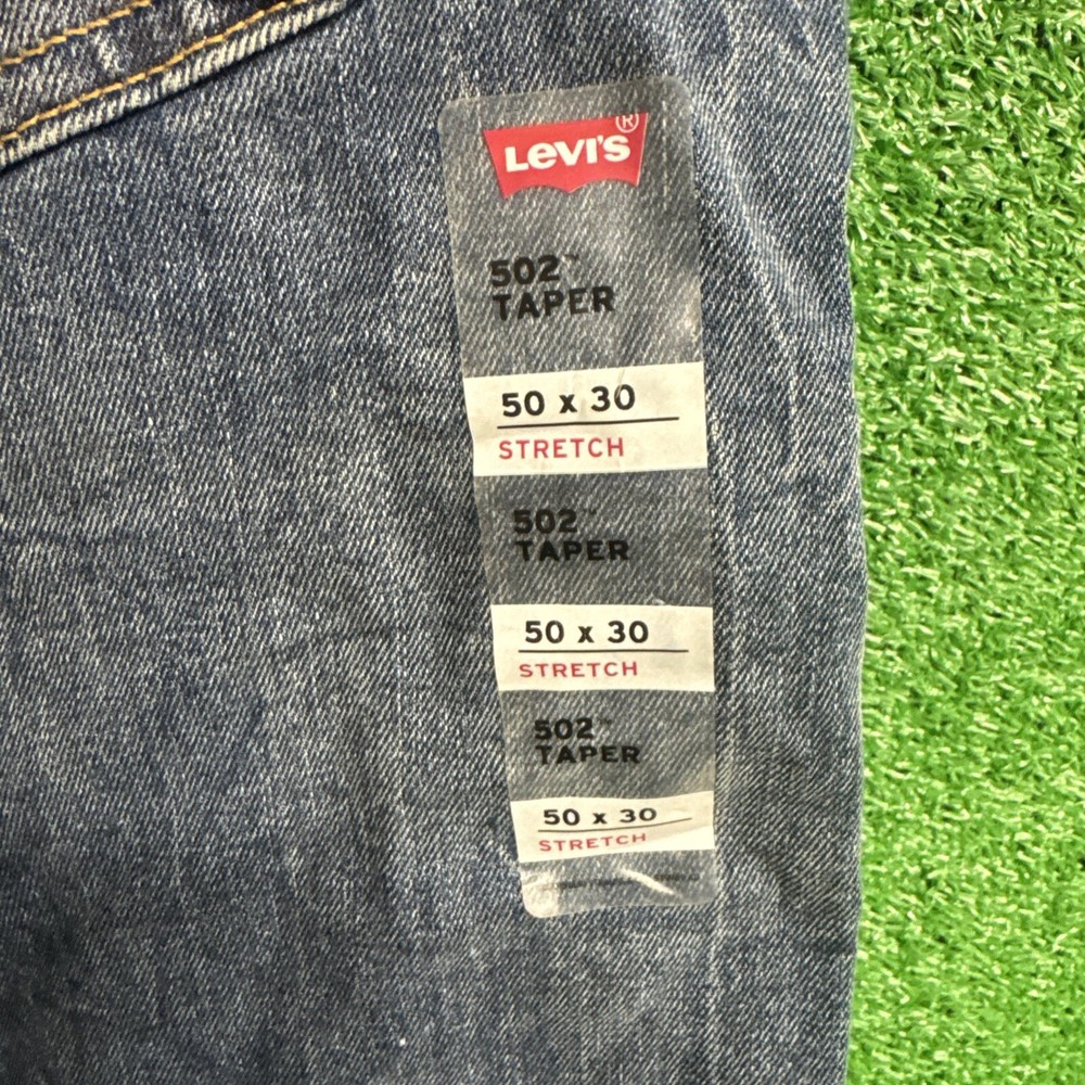Levi's 502 Regular Taper Jeans in size 50x30 for men. These blue jeans feature a tapered style, making them a comfortable and stylish choice for everyday wear. SKU y56 DATE 01/24/25 LISTED BY TM CONDITION nwb SIZE/SHADE 50x30 blue